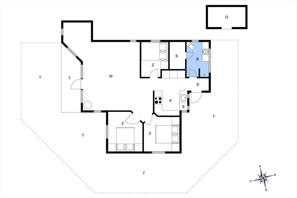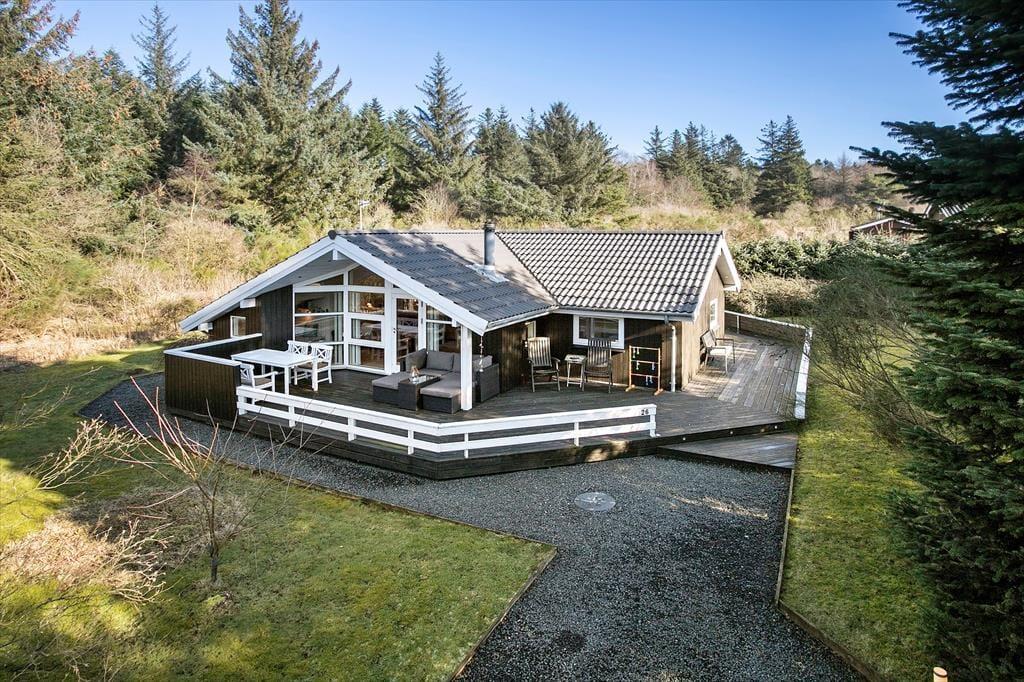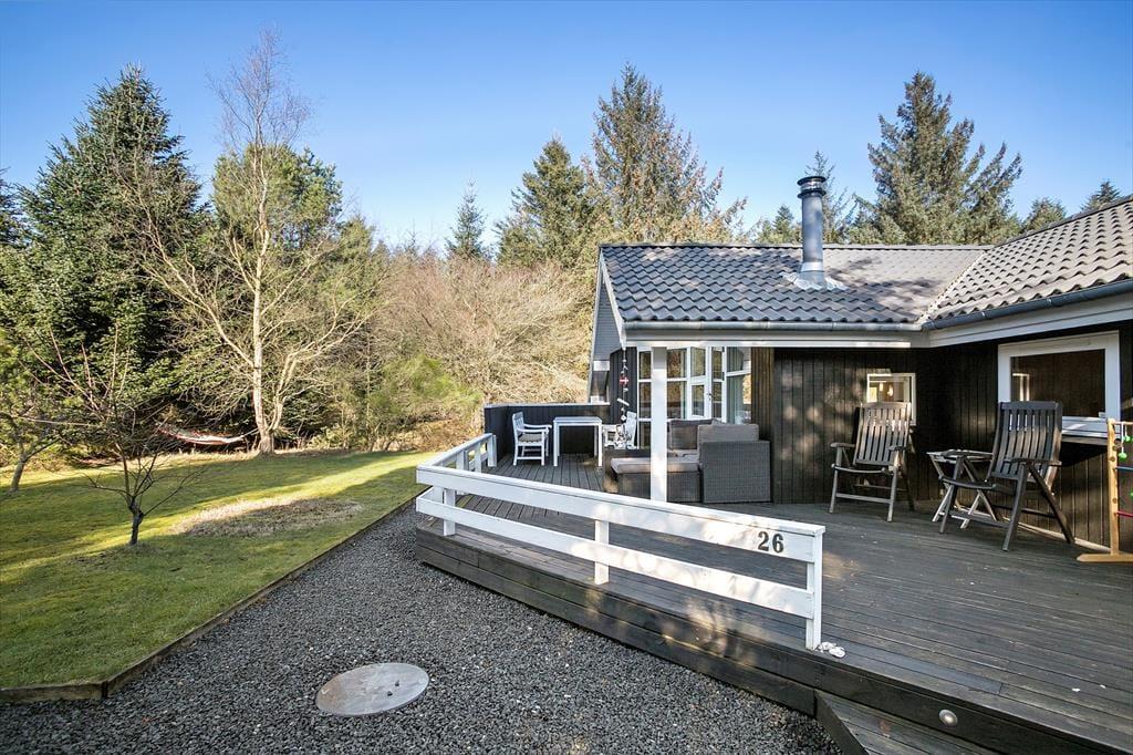 Sommerhusets træterrasse breder sig mod øst, syd og vest, så I får nemt ved at finde en solrig opholdsplads dagen lang. Trænger I til skygge, kan I sætte jer ind under overdækningen eller slå parasollen op. På græsplænen er der plads til fri udfoldelse – og uanset om I slapper af, leger eller spiller bold, kommer det til at ske i rolige og ugenerede omgivelser takket være beliggenheden for enden af den lukkede Poppelvej.