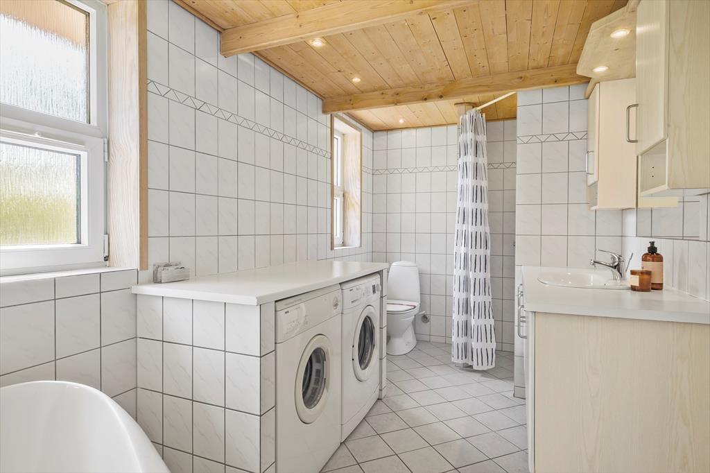 Har man en stor familie, eller vil man gerne have plads til besøg fra bedsteforældre og venner undervejs i ferien, så har dette sommerhus de helt ideelle rammer til formålet. Huset har god plads med et stort opholdsrum med åbent køkken, spiseplads og stue med brændeovn, tv og udgang til terrasser, og derudover fem soverum med 9 sengepladser og to badeværelser, hvoraf det ene er med spabad og bruser. Her er indrettet i en enkel, men hyggelig stil, med klinkegulv, lyse vægge og højt til loftet og sommerhuset er udstyret med alle tænkelige hjælpemidler fra opvaskemaskine til tørretumbler, så man kan holde så afslappende en ferie som overhovedet muligt. Endelig skal det gratis og trådløse internet nævnes, så medbring endelig pc eller computer, så man har mulighed for at søge information og oplysninger om området.