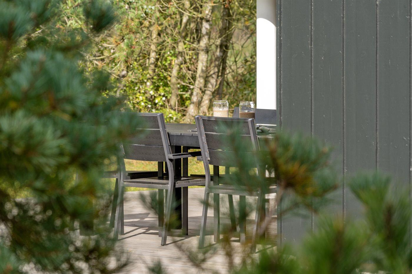 Ferieboligen er beliggende på en 1000 m² stor naturgrund. Der er 4000 m til havet. Nærmeste forretning er beliggende i en afstand af 2000 m. Der er en golfbane i en afstand af 2000 m. Til ferieboligen hører 100 m² terrasseareal. Desuden er der 5 m² overdækket terrasse. Bålsted. Gasgrill står til rådighed. Parkering ved ferieboligen.