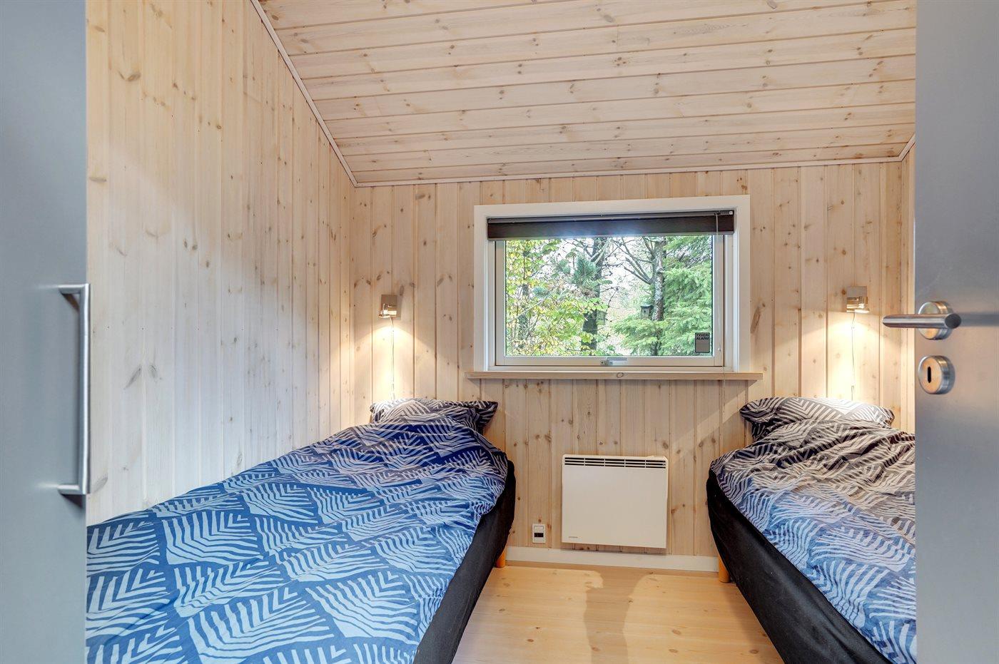 Der er i alt 3 soveværelser. Sovepladserne fordeler sig på: 4 sovepladser i dobbeltsenge. 2 sovepladser i enkeltsenge. Derudover er der 1 stk. barneseng.