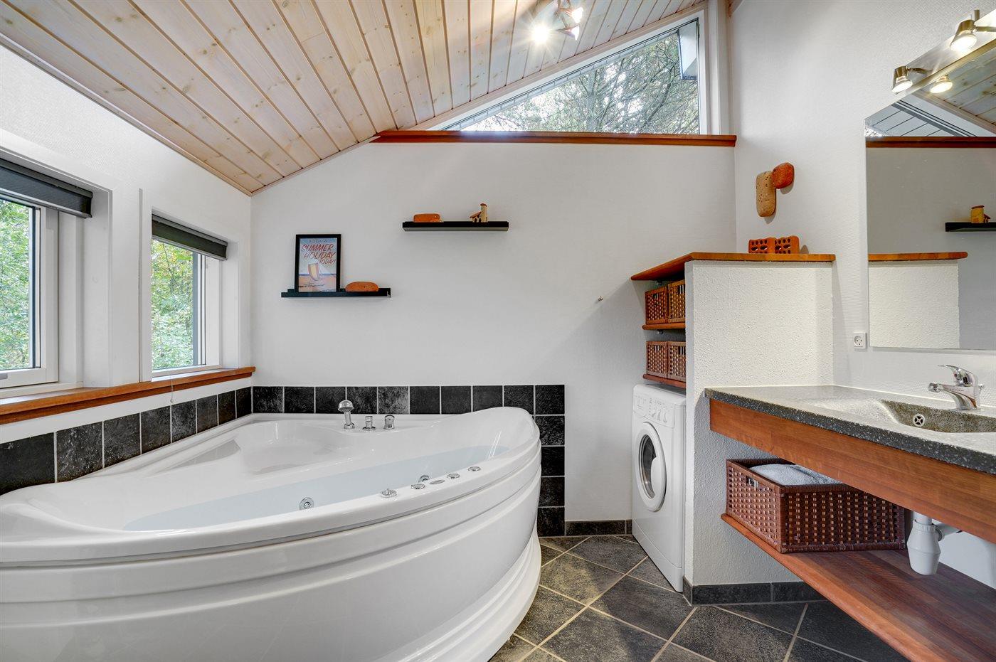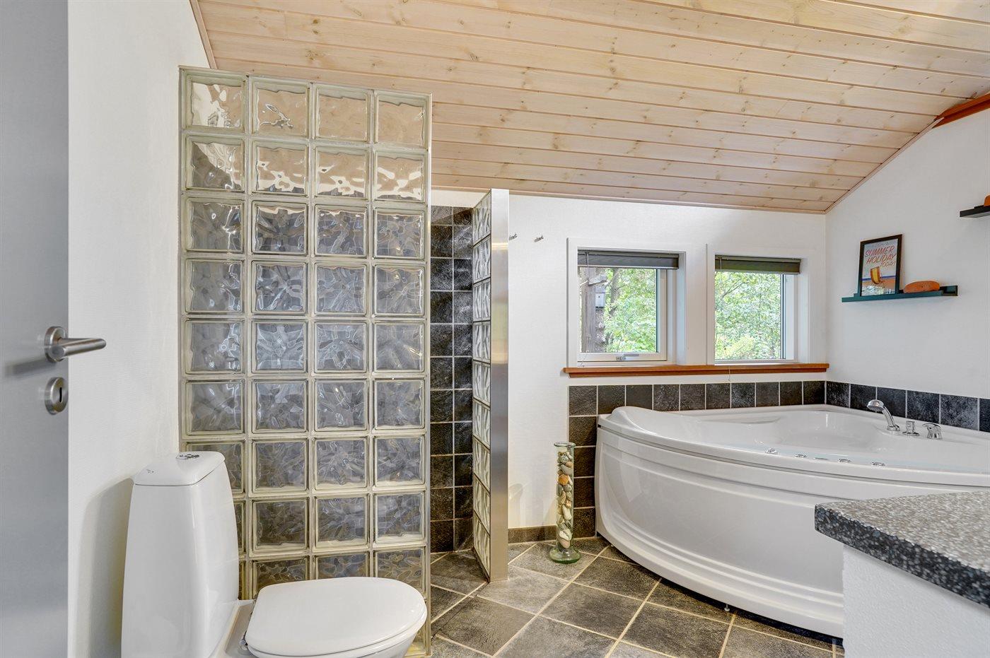 Der er 1 badeværelse med bruseniche og 2 toiletter, heraf 1 gæstetoilet. Der er gulvvarme på 1 badeværelse. Der er gulvvarme på gæstetoilettet.
