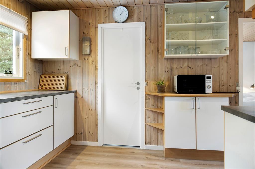 Sommerhuset præsenterer sig med en indbydende atmosfære, der straks får dig til at føle dig velkommen. Indenfor finder du et lyst og åbent rum, hvor møblerne er valgt for at skabe en hygge, der indbyder til afslapning. Store vinduer lukker solens stråler ind og giver udsigt til den dejlige naturgrund, hvor du måske engang imellem bemærker et rådyr eller en hare. Stuen bliver nok et naturligt samlingspunkt for familien, hvor der kan spilles brætspil eller hygges foran brændeovnen, mens regnen trommer let mod ruden. Køkkenet er praktisk indrettet, så madlavningen bliver en fornøjelse, uanset om du tilbereder en hurtig frokost eller en festmiddag. Med flere soveværelser er der plads til alle, så du trygt kan nyde en god nattesøvn efter en aktiv dag.