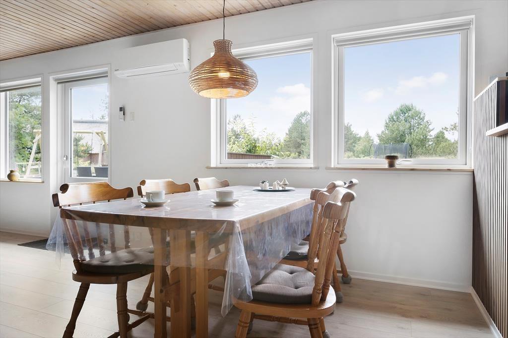 Det gedigne røde murstenshus har en gennemtænkt planløsning til seks personer, for der er tre gode soveværelser, et badeværelse og et gæstetoilet inden døre. Alle rum fremstår lyse og indbydende efter seneste modernisering – inklusiv den rummelige opholdsafdeling, hvor køkken og stue ligger i åben forbindelse. Sofahjørnet indbyder til, at du sætter farten helt ned og slapper af med gode bøger, en krydsogtværs eller strikkeprojektet. Brændeovnen er på kølige dage med til at skrue op for hyggestemningen, mens spisepladsen giver dig og dine kære et oplagt sted at samles til en langsom morgenmad, en livlig frokost og dybe samtaler hen over aftensmåltidet.