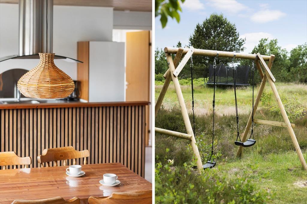 Med sine 3723 m2 er naturgrunden pænt stor, og omgivelserne er derudover dejligt fredelige, så det er et herligt sted at slappe af og komme helt ned i tempo. Hvis børnene ikke kan sidde stille, er der sandkasse og gynger at hygge sig med, og hvis I vil spille havespil eller drible med en bold, kan det også lade sig gøre. En lur i en god liggestol eller et frisklavet måltid tilberedt på grillen kan også blive del af sommerlivet i det fri, for terrassen er udstyret med alt det, der kan være med til at forsøde ferietilværelsen.