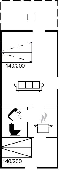 Ferielejligheden egner sig til 4 personer. 2 af sovepladserne er kun egnet til større børn (4-11 år). Ferieboligen er på 30 m² og er bygget i 2018. Det er tilladt at medbringe 1 husdyr. Frysekapacitet på 10 liter.