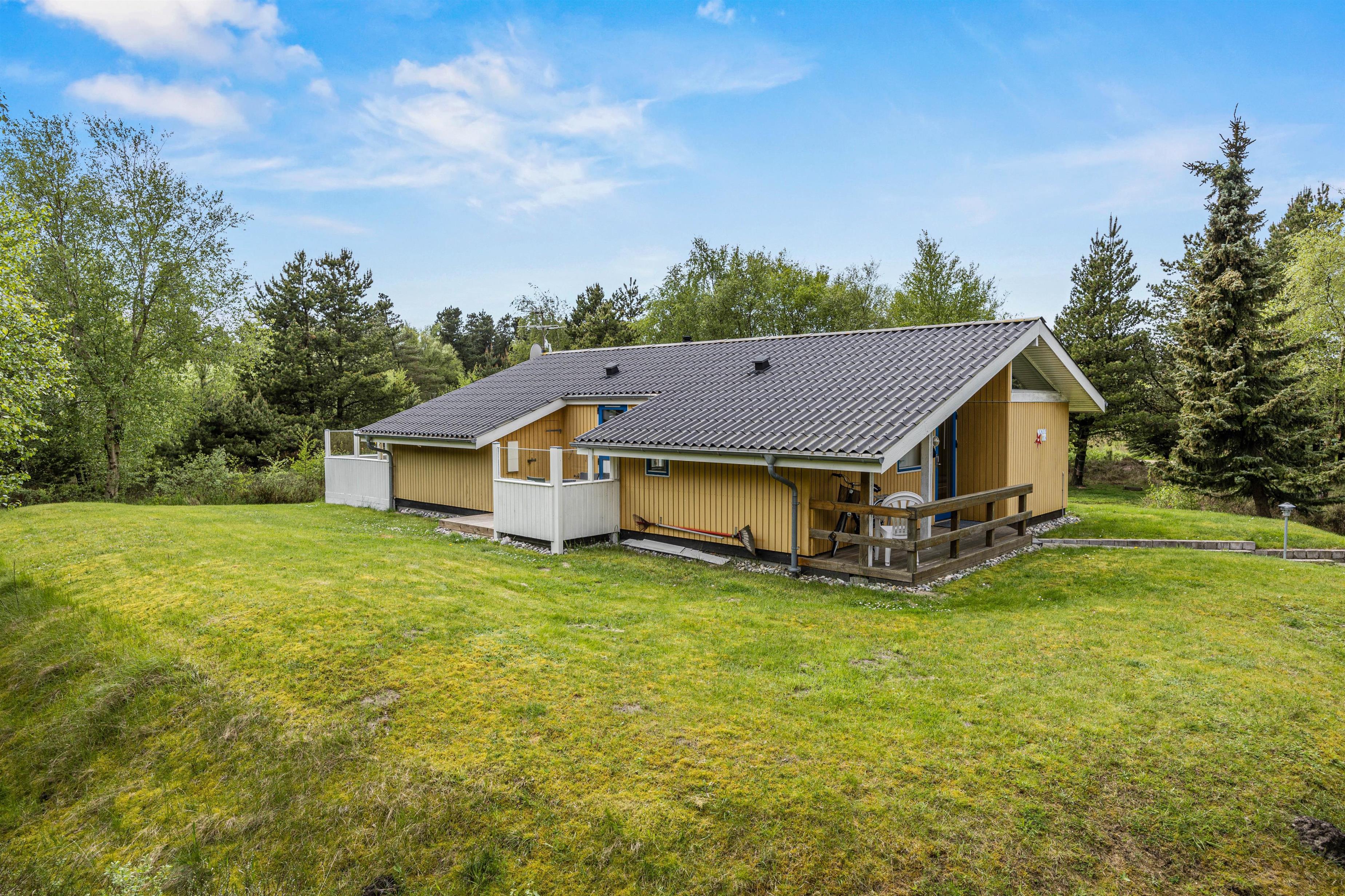 Hjertelig velkommen i dette velholdte feriehus med sauna og spa. Sommerhuset er beliggende på en smuk afskærmet grund med stor have på en rolig blind vej. Lige ved siden af ligger en fredet plantage med skov og hede. Den attraktive strand ved Lakolk ligger kun ca. 2 km væk.