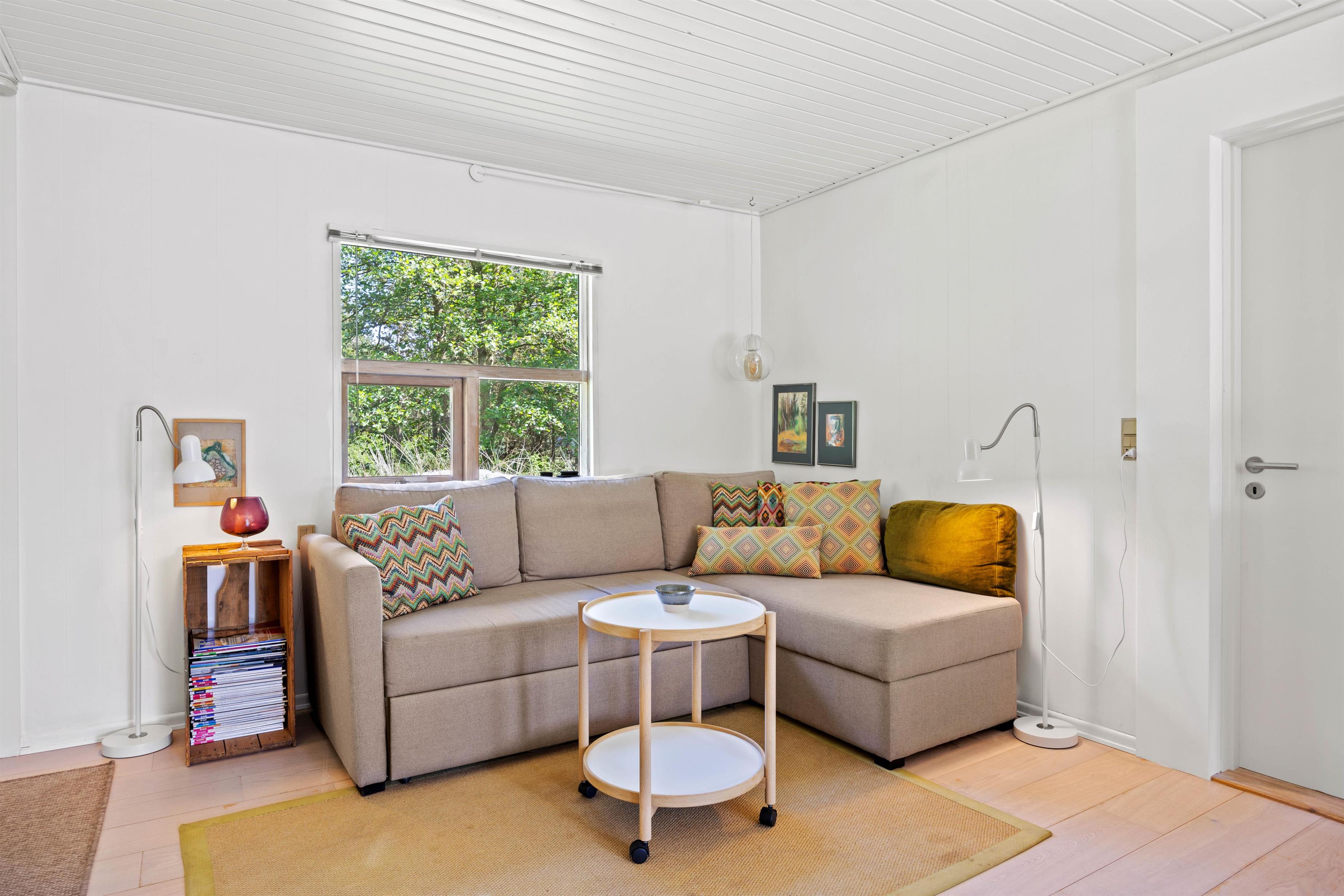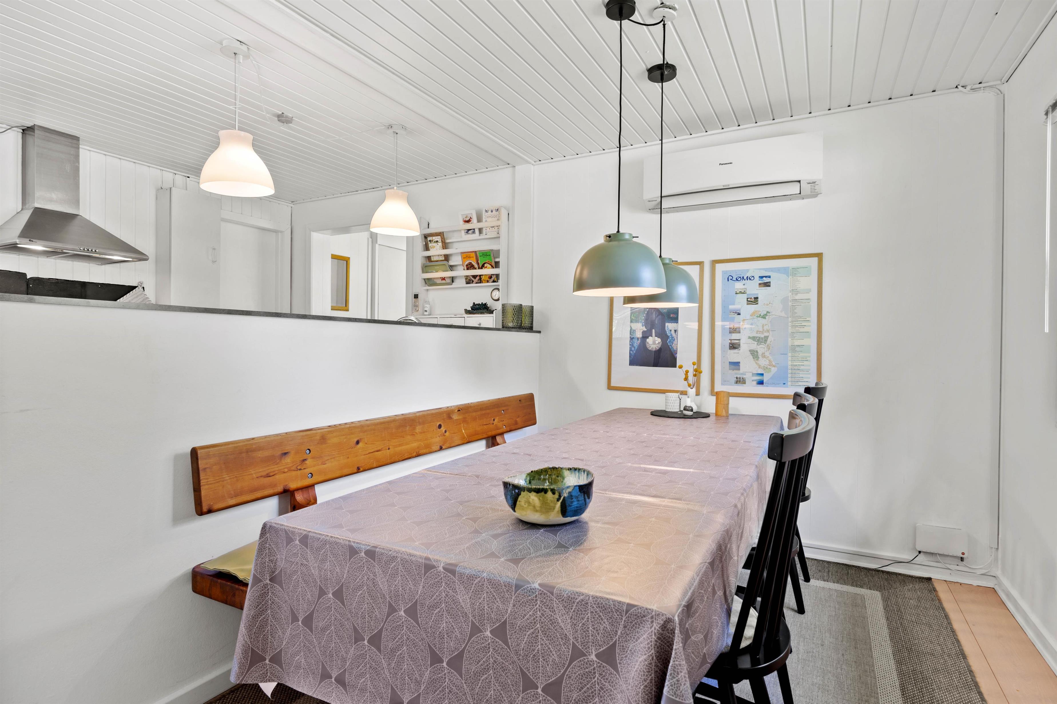 På Råbjergvej 3 byder det charmerende feriehus velkommen med sin varme og venlige atmosfære. De lyse farver og smukke trægulve er kombineret fint med det rustikke klinkegulv og skaber et harmonisk helhedsbillede. I feriehusets hjerte, den hyggelige stue, kan alle få sin yndlingsplads. Uanset, om du slapper af i en behagelig lænestol foran brændeovnen, ser en film i sofaen eller læser en spændende bog i vinduesnichen, har du masser af muligheder for at slippe hverdagens stress. Ud over brændeovnen er der også en energibesparende varmepumpe til opvarmning.
