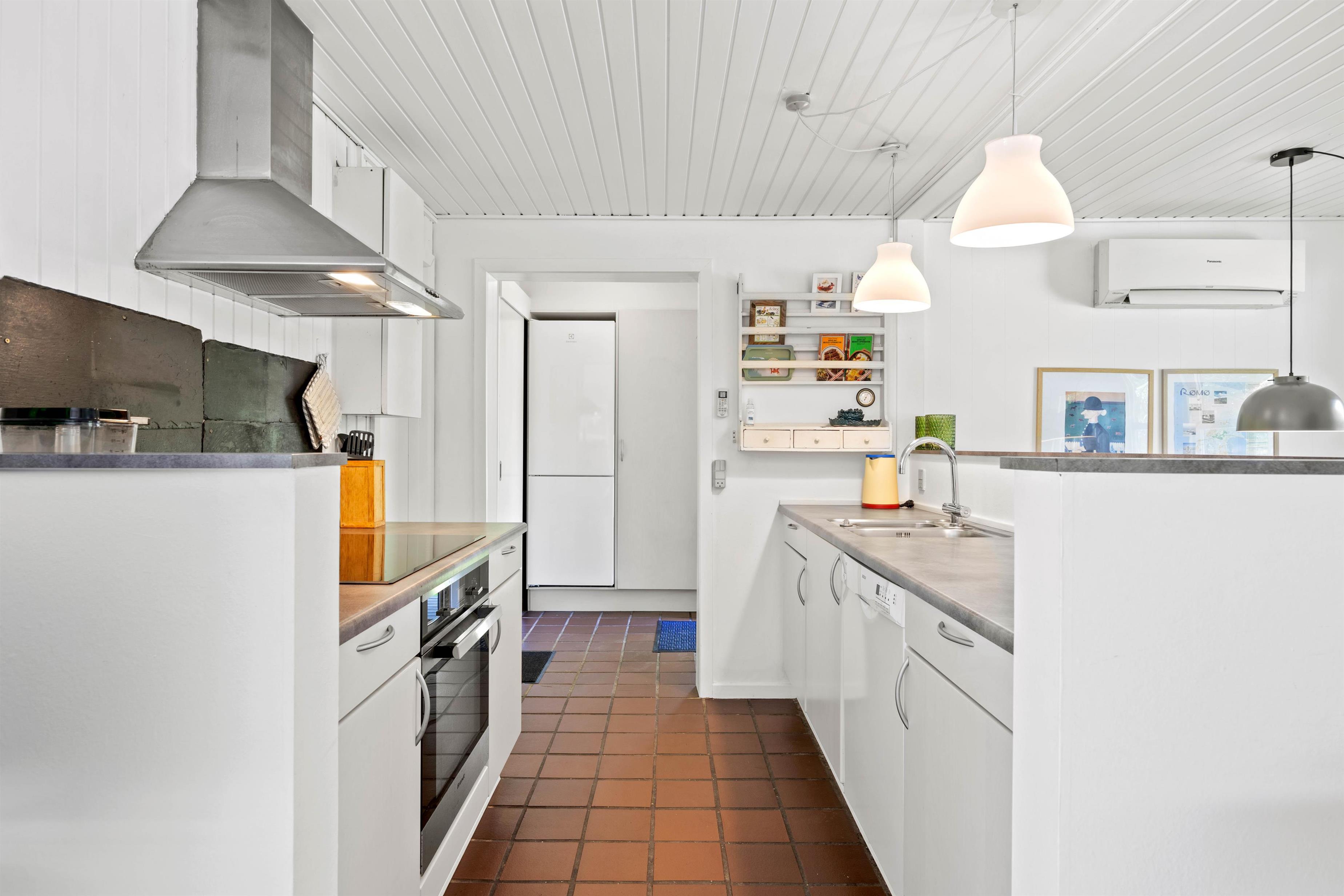 I kan lave mad sammen i det åbne køkken og nyde lækre måltider sammen ved spisebordet. Opvaskemaskinen tager sig af opvasken bagefter. I sommerhuset er der også badeværelse og to hyggelige soveværelser med komfortable dobbeltsenge.
