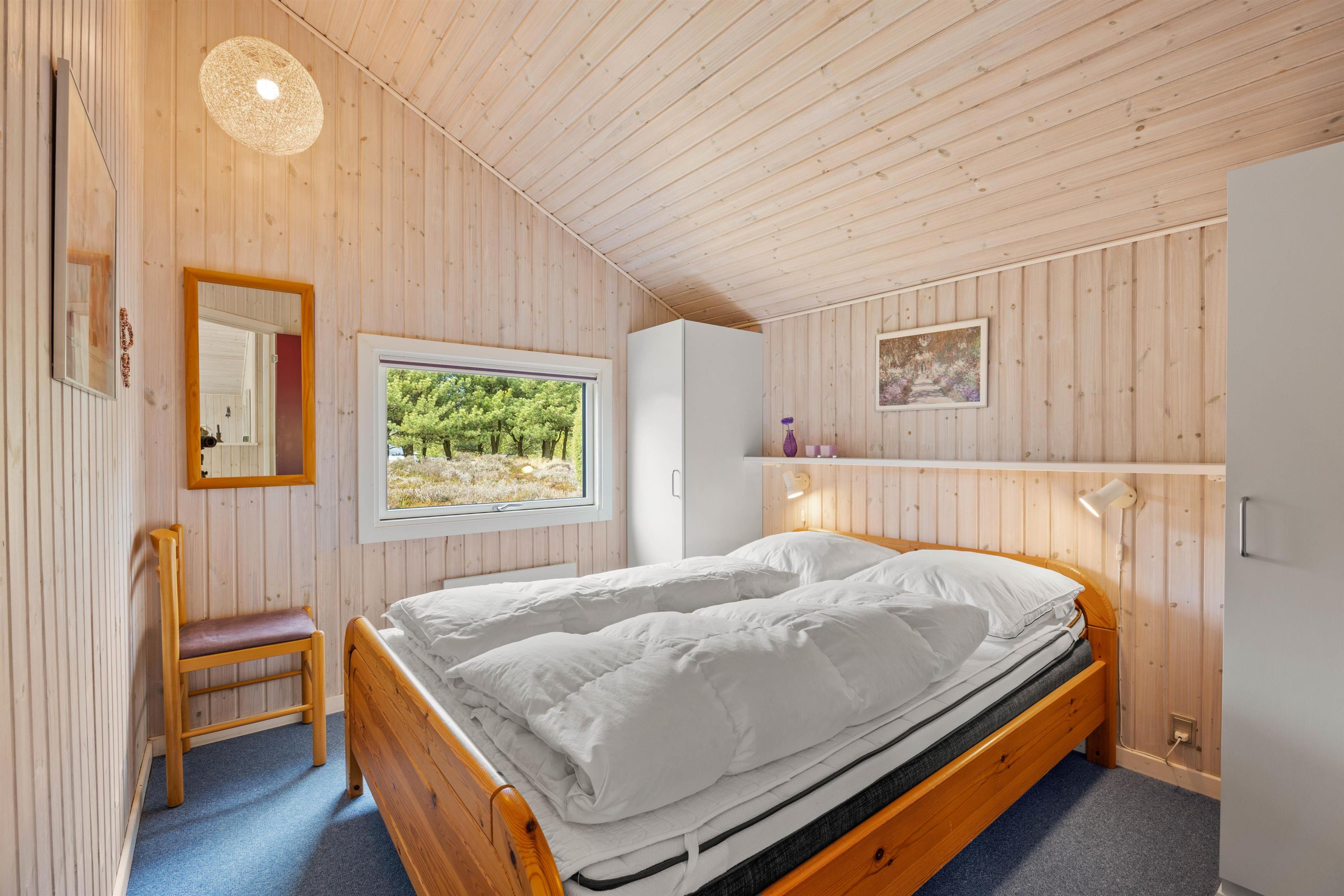 Det rummelige badeværelse har både sauna og spa. Her kan I slappe af og blive varmet igennem efter en lang tur i naturen. Således afslappede kan I sove rigtigt godt i et af de 2 soveværelser med dobbeltsenge – Vesterhavsluften gør noget ekstra godt for nattesøvnen. Der er både opvaskemaskine og vaskemaskine i sommerhuset, så I kan føle jer hjemme her midt i naturen.