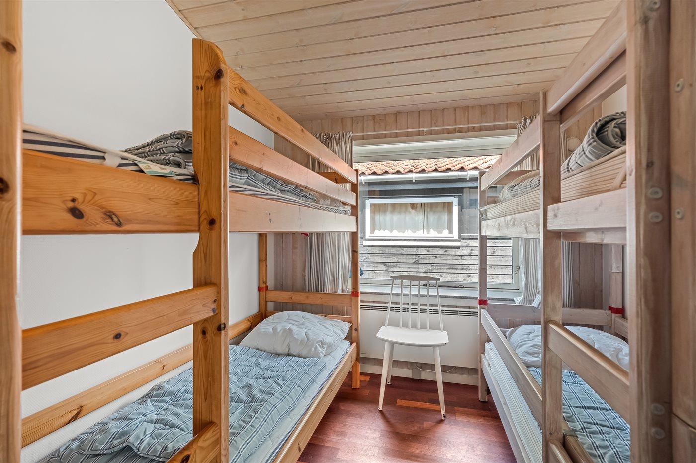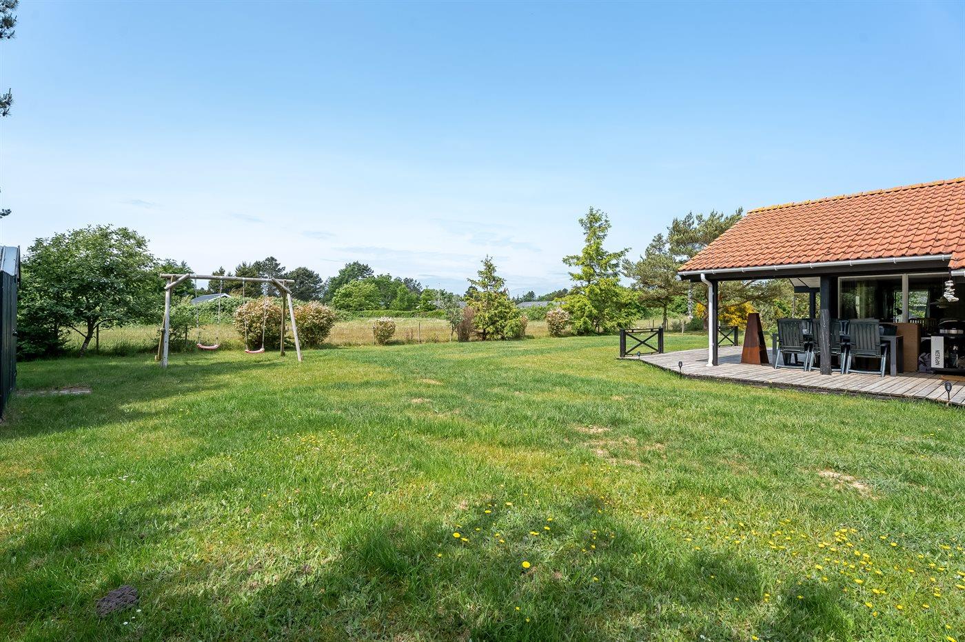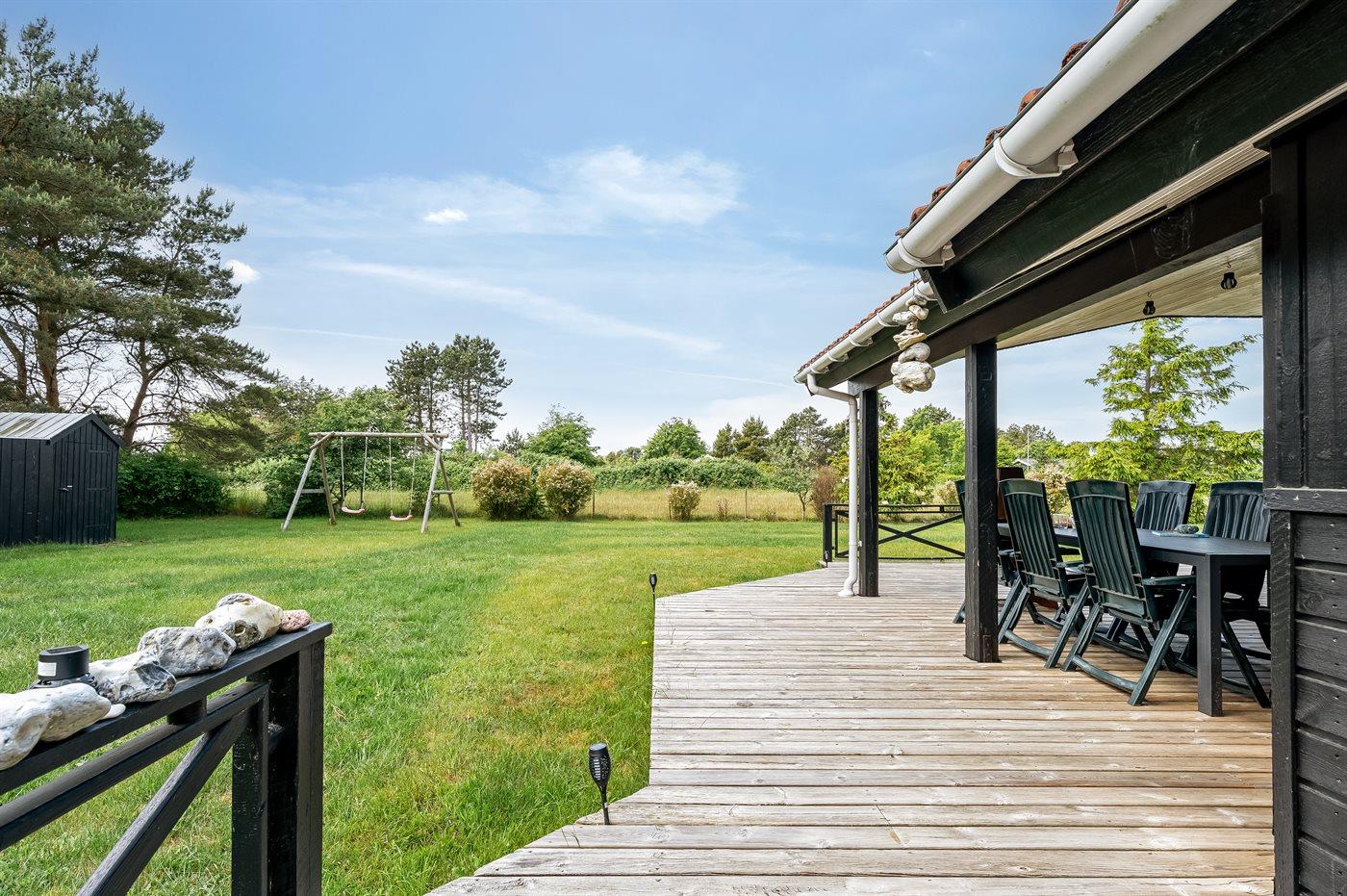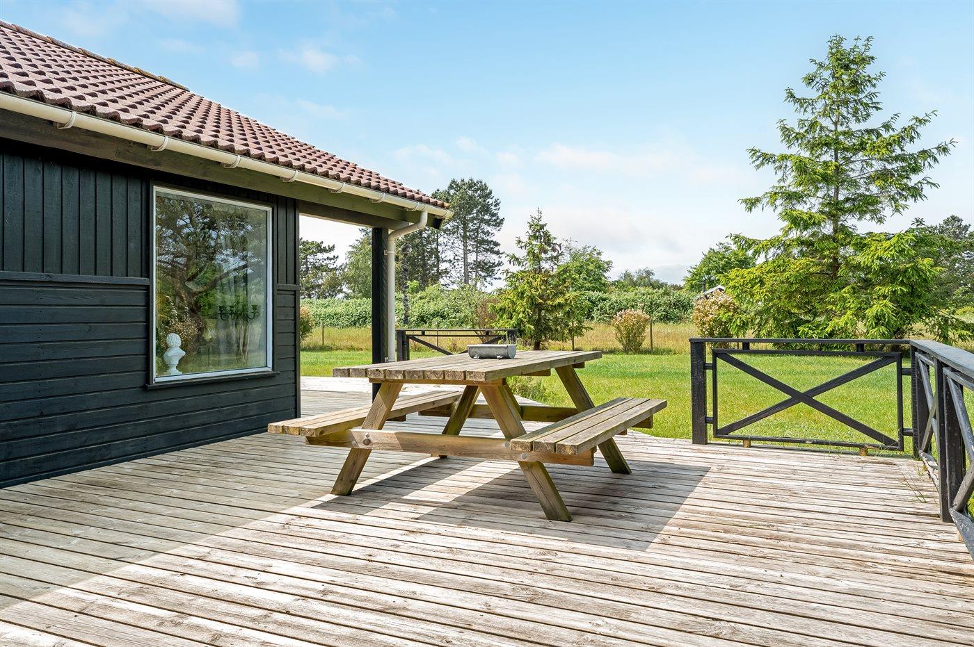 Dejligt sommerhus i træ, bygget i 2004, beliggende kun 150 m fra havet på en indhegnet naturgrund med beplantning. Til huset hører stor åben terrasse og 2 overdækkede terrasser med diverse havemøbler. Indvendig er der dels trævægge, dels malede vægge samt trælofter. Trægulve, dog klinker i badeværelse og gang. Dejligt badeværelse med gulvvarme, bruseniche og vaskemaskine. Det åbne køkken har gulvvarme og er udstyret med bl.a. opvaskemaskine, mikrobølgeovn og komfur med keramiske kogeplader. Skøn opholdsstue med brændeovn, DVD-afspiller, TV og stereoanlæg med CD-afspiller. Sovepladserne er fordelt på 1 værelse med dobbeltseng og 1 med 2 køjesenge. Desuden anneks med 2 enkeltsenge og lille tekøkken. Til de små feriegæster er der høj barnestol til rådighed.