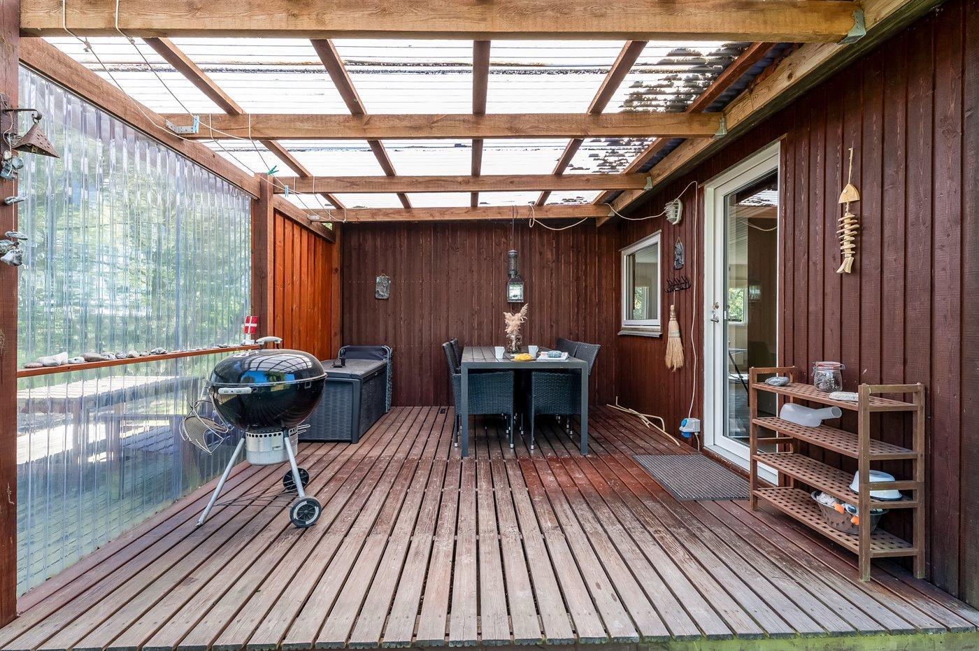 Rummeligt sommerhus beliggende i rolige og naturskønne omgivelser i udkanten af et sommerhusområde nær vandet. Huset ligger på en blind vej, på en lukket grund med plads til hygge og leg, og med gode muligheder for udendørs afslapning på de skønne terrassearealer.