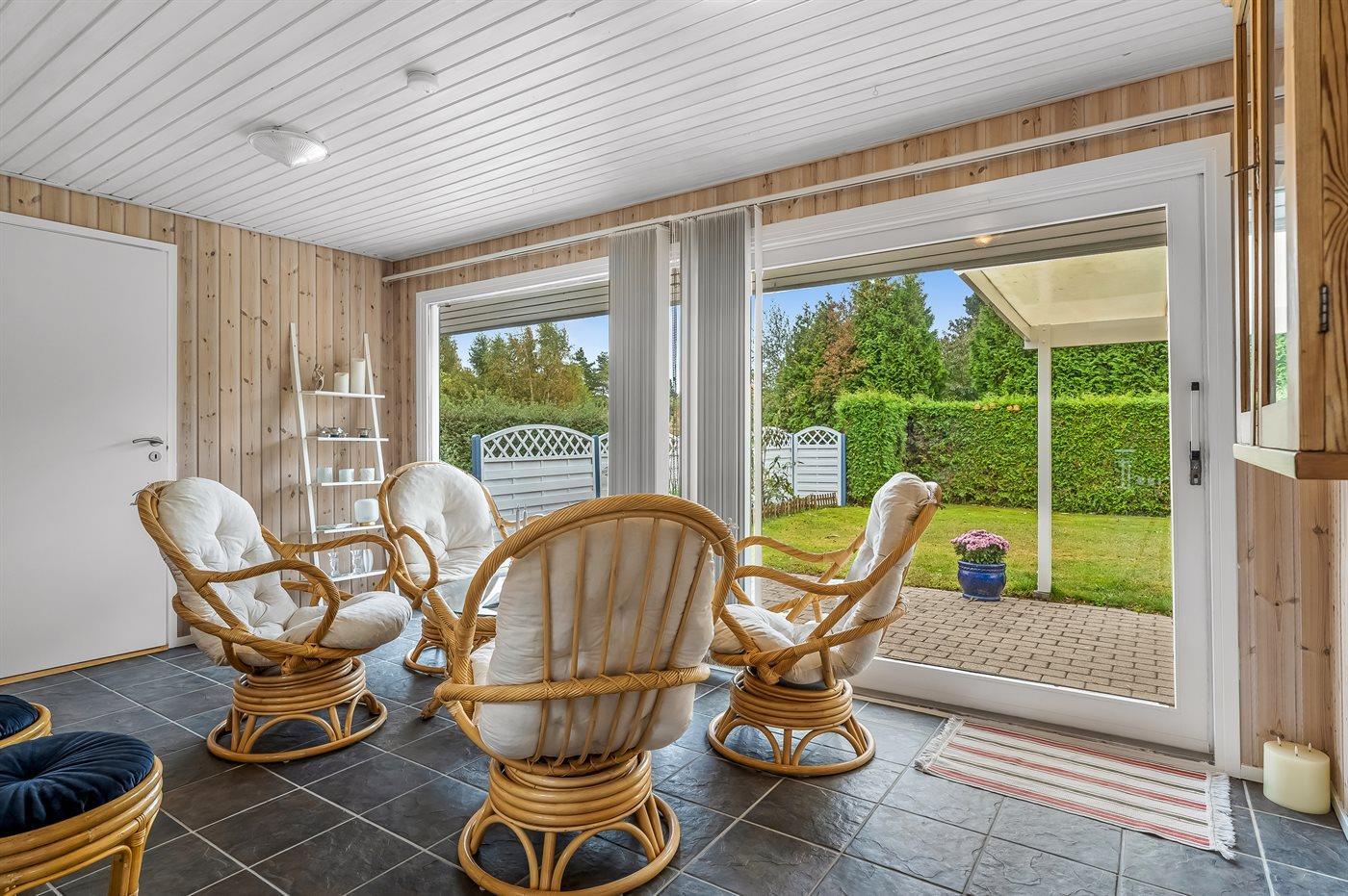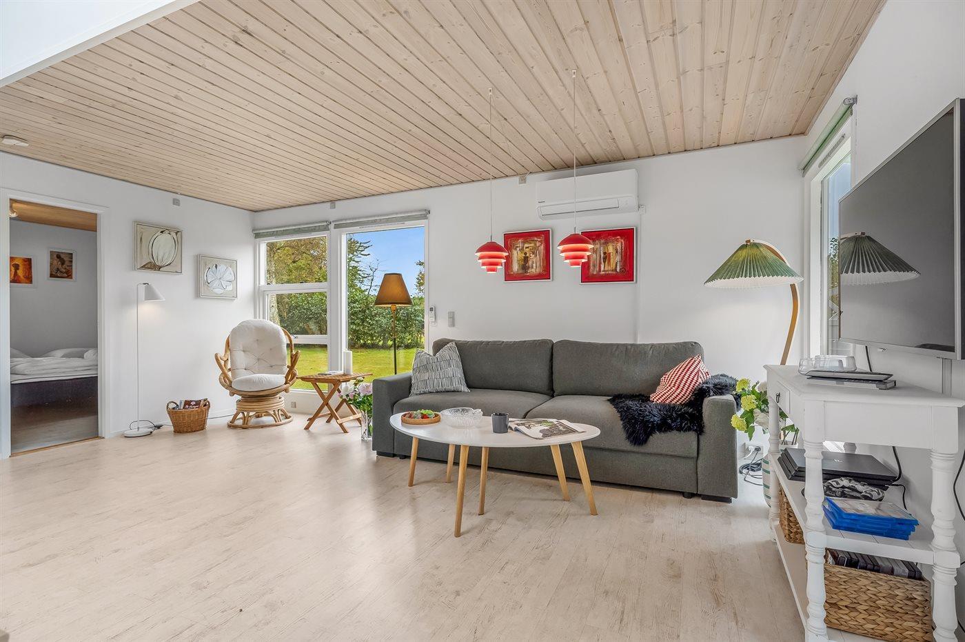 Ferieboligen er beliggende på en 840 m² stor havegrund. Grunden er indhegnet. Der er 500 m til havet. Nærmeste forretning er beliggende i en afstand af 800 m.Til ferieboligen hører åbent, til dels overdækket og lukket terrasseareal. Ligeledes er der adgang til udestue. Fodboldmål. Bålsted. Grill til rådighed. Der er carport til rådighed. Parkering ved ferieboligen.