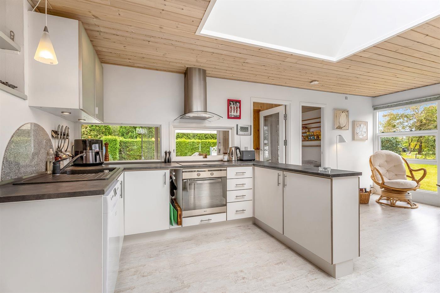 Køkkenet er udstyret med 1 køleskab. Der er 4 keramiske kogeplader, varmluftovn, mikrobølgeovn, Airfryer samt opvaskemaskine.