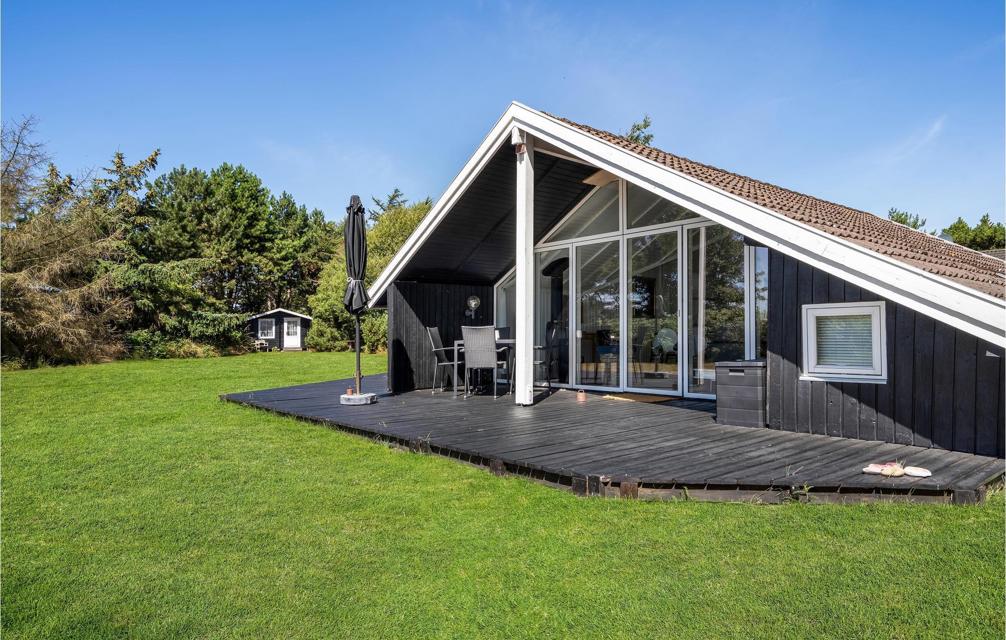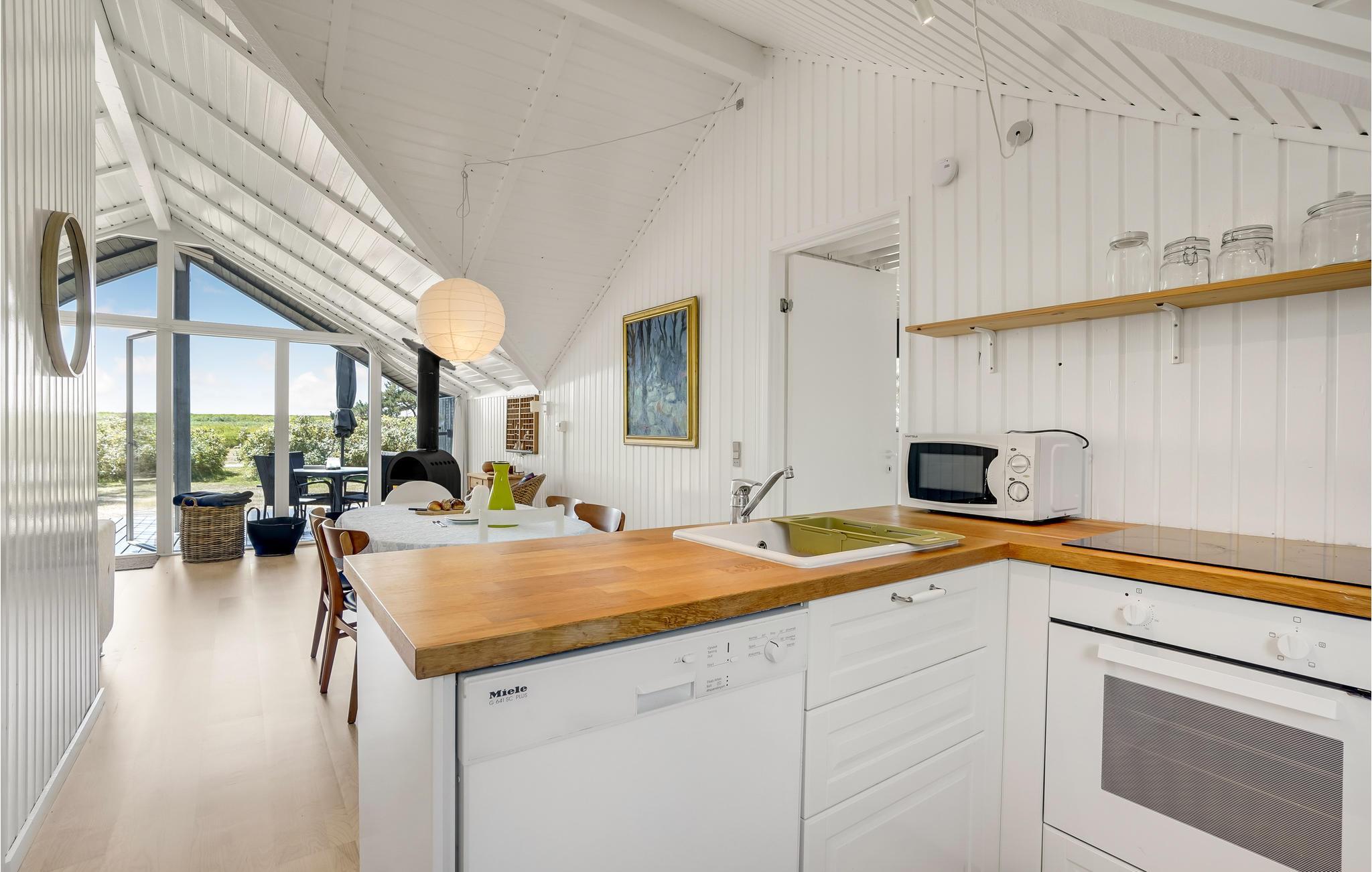 Komfortabelt feriehus med brændeovn, beliggende meget tæt på sandstranden.