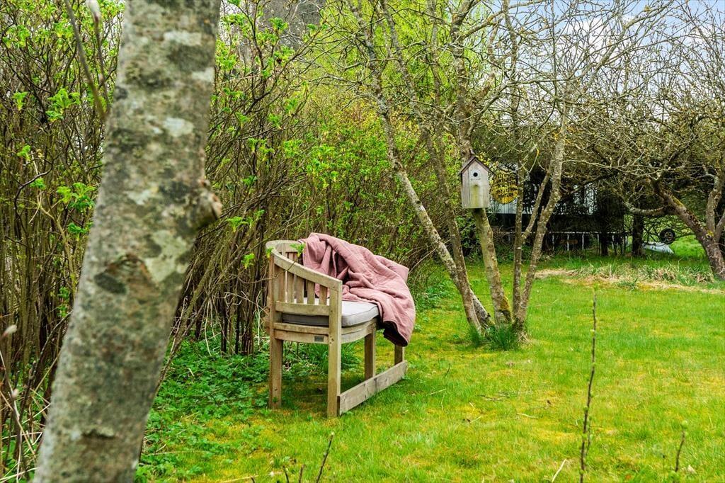 Rundt om huset breder en stor have sig ud med gamle træer, grønne buske og masser af plads til at være sammen under åben himmel. På terrassen kan du tænde op i grillen, nyde eftermiddagskaffen eller blot lade tankerne flyve, mens solen varmer. Der er altid et sted med læ, og uanset om du søger sol eller skygge, finder du det her.
