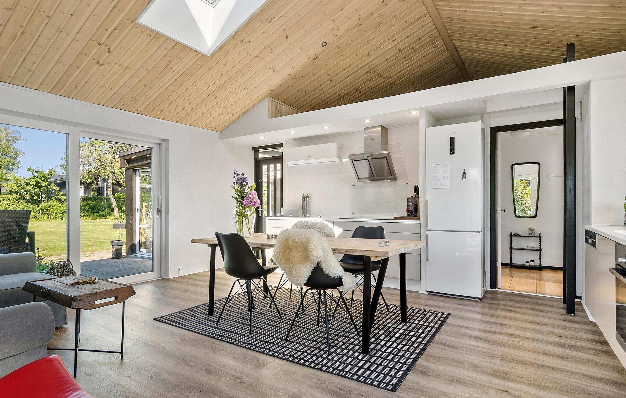 Dette charmerende hus kombinerer harmonisk hygge og enkel elegance. Et varmt trælook, komfortable sofaer og kærligt udvalgte detaljer skaber en atmosfære, der hurtigt vil få jer til at føle jer hjemme. Slap af med en god kop kaffe, lyt til god musik eller lav lækre måltider til jer selv og familien i det moderne køkken. Tænd brændeovnen på køligere aftener og slap af i den beroligende varme.