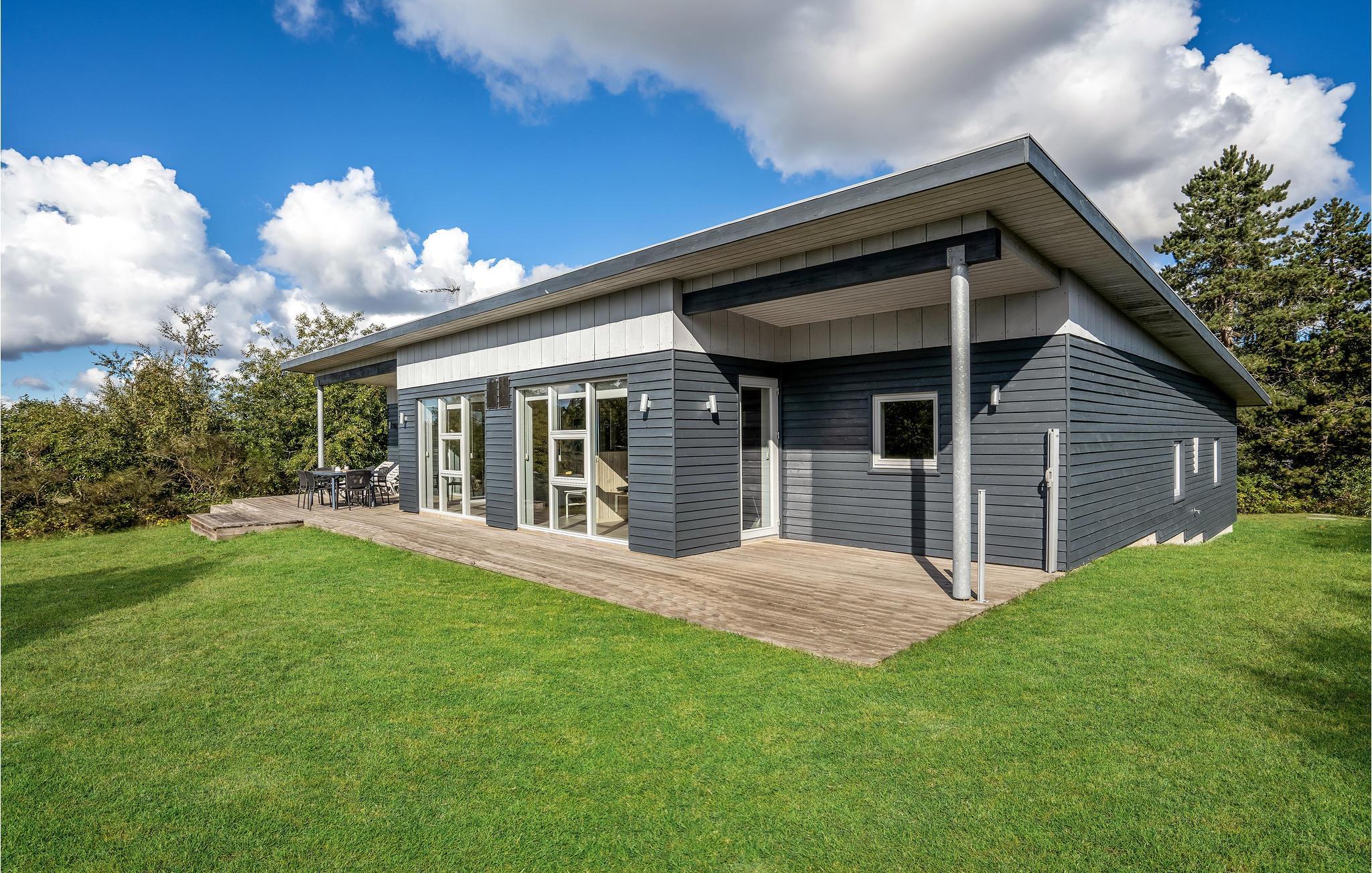 Lækkert feriehus i Ebeltoft med sauna, spabad og aktivitetsrum tæt på strand og by.