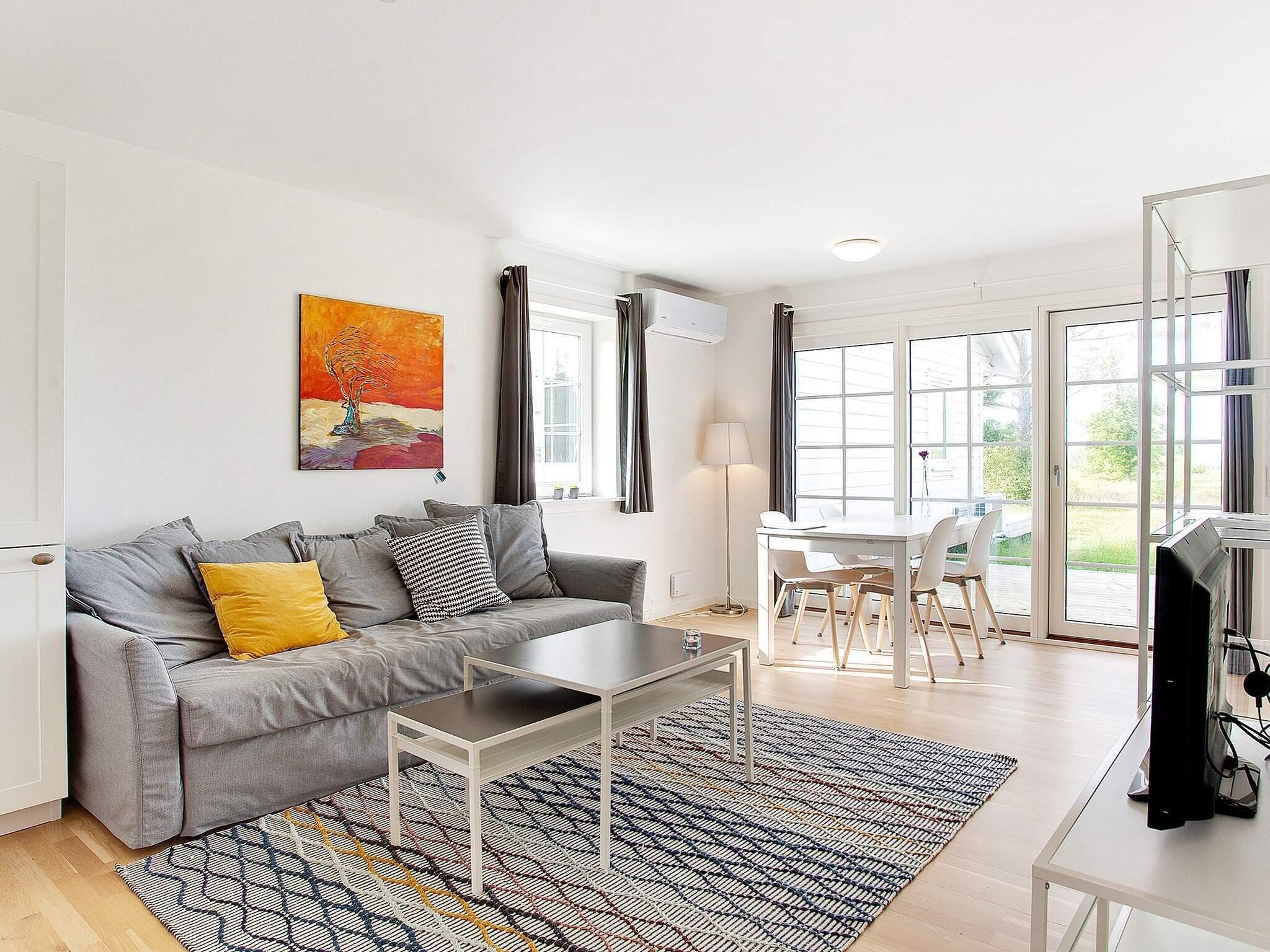 Nyrenoveret feriehus nær Kattegat og golfbane med moderne faciliteter og skøn terrasse.