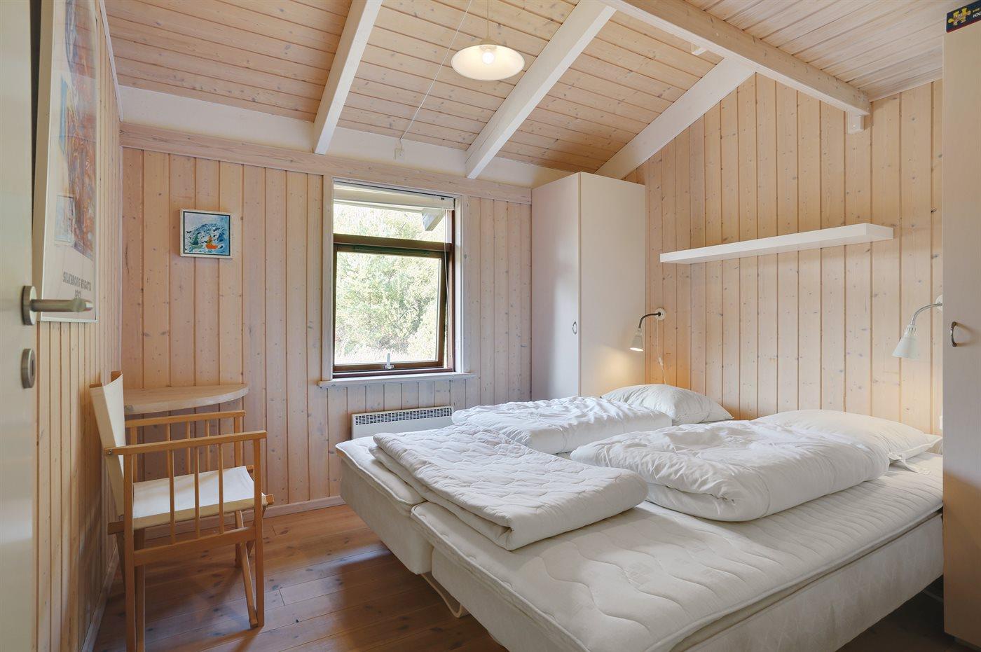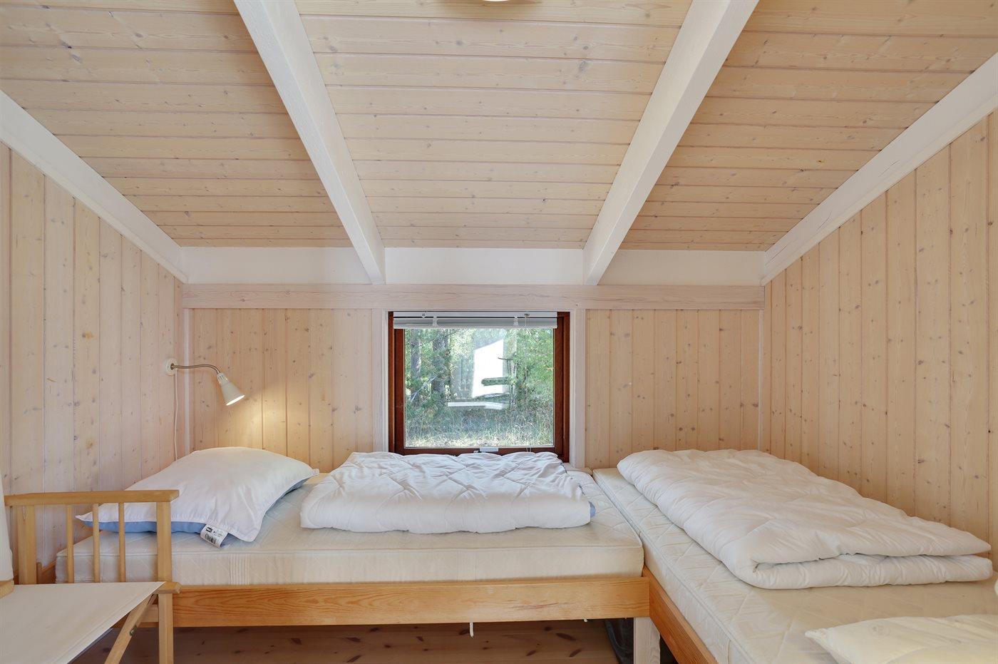 Der er i alt 3 soveværelser. Sovepladserne fordeler sig på: 4 sovepladser i dobbeltsenge. 2 sovepladser i enkeltsenge.