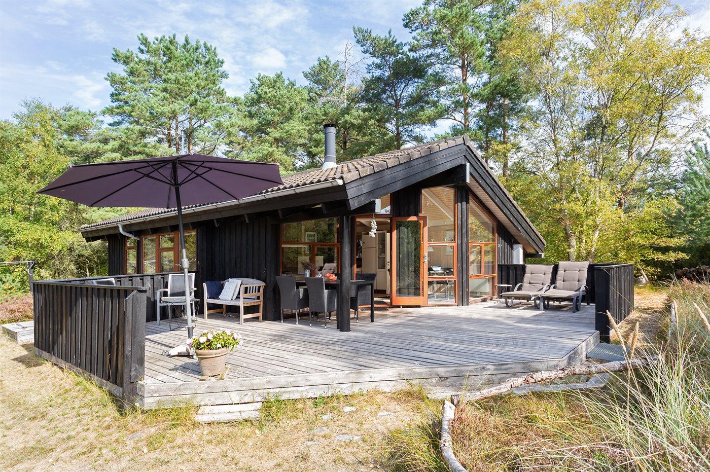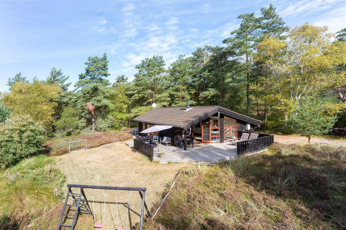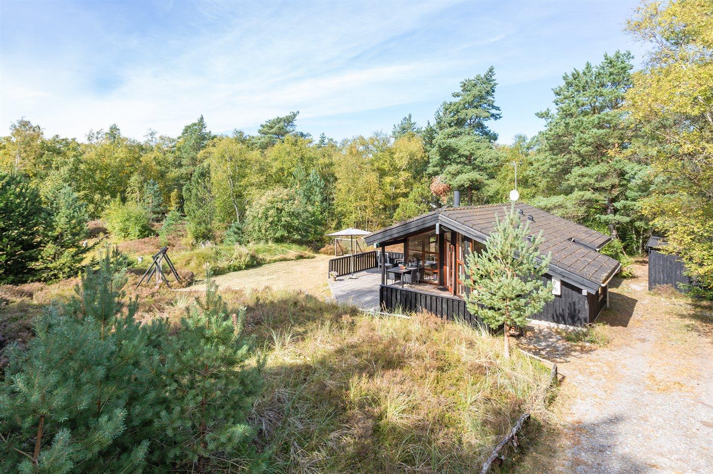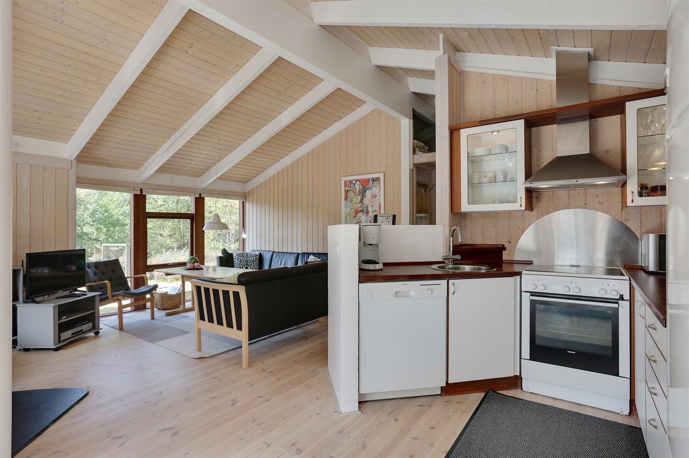 På en solrig natur-græsgrund i attraktivt område ligger dette smukke feriehus. Huset har en moderne køkkenafdeling, en flot møbleret opholdstue og dejlige lyse værelser.