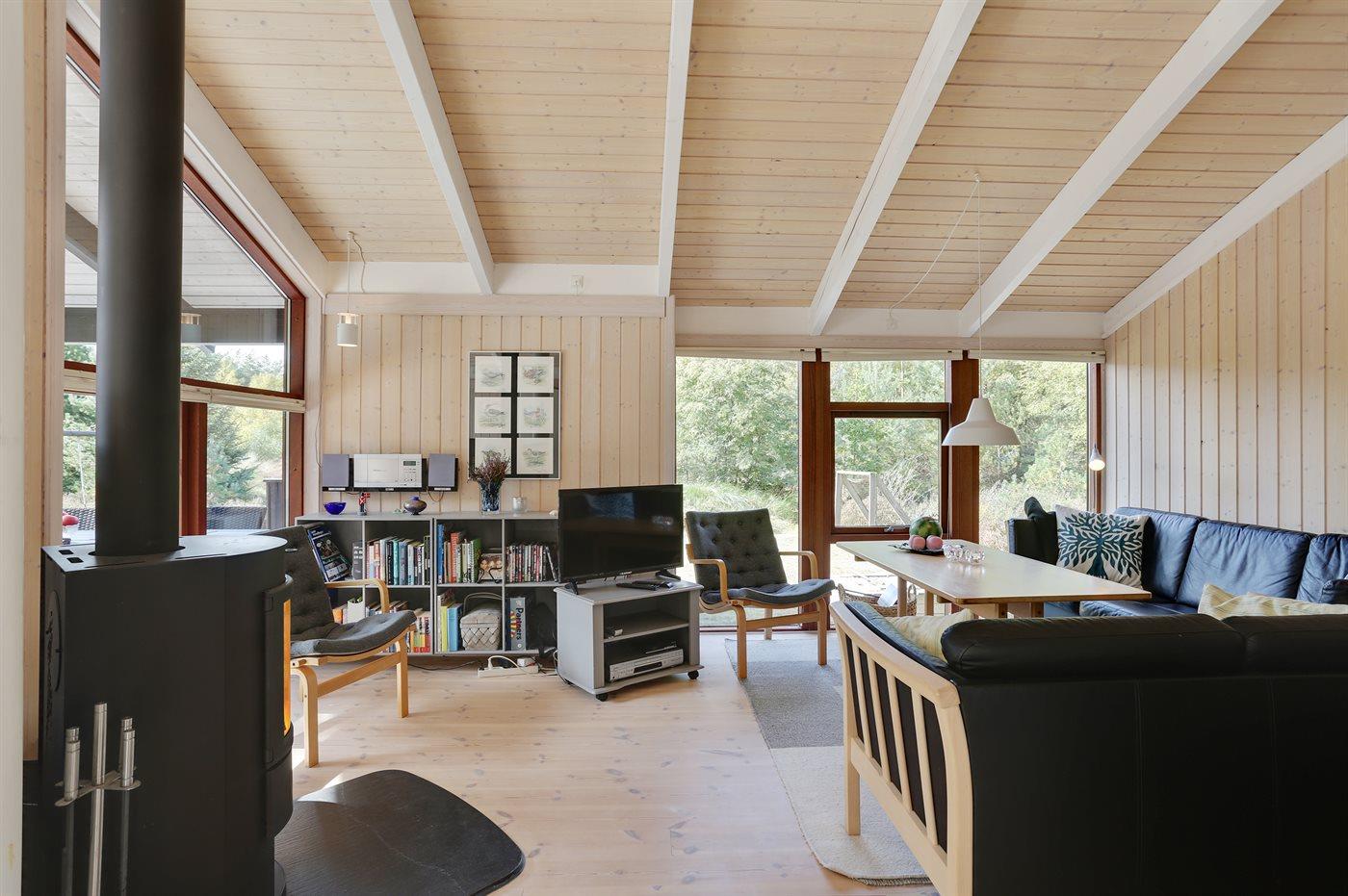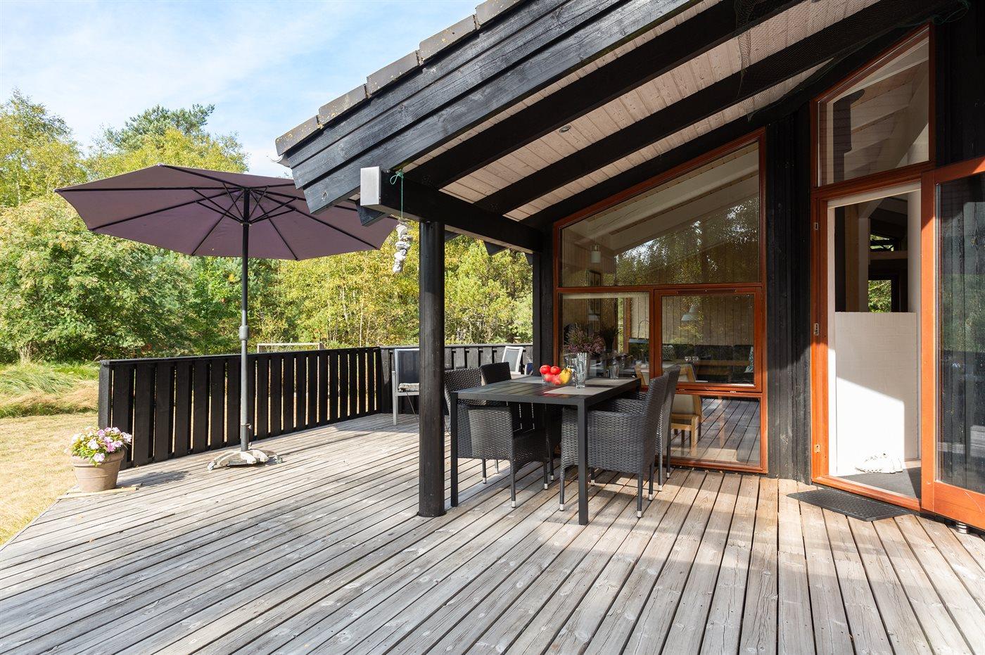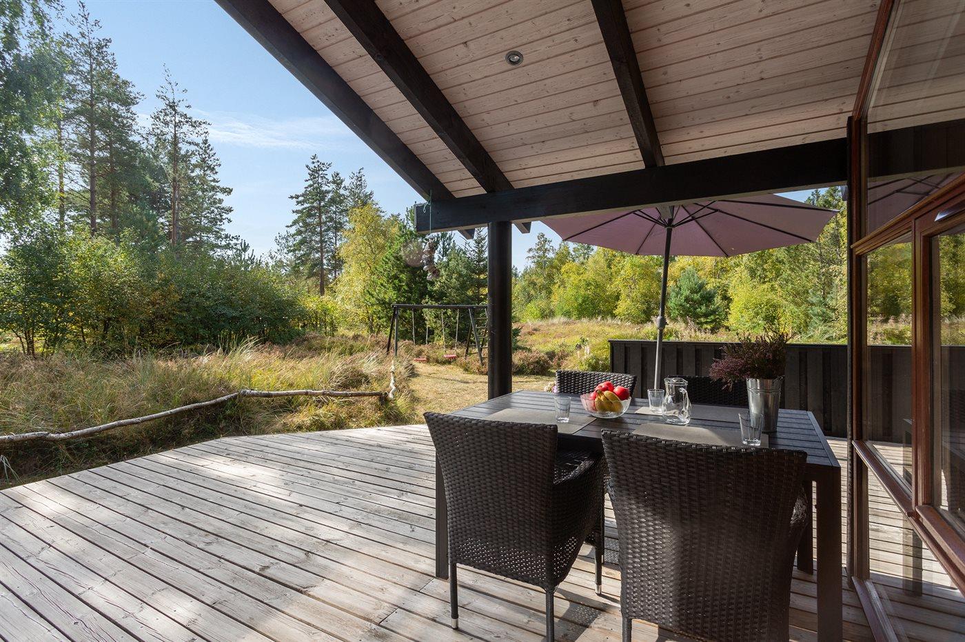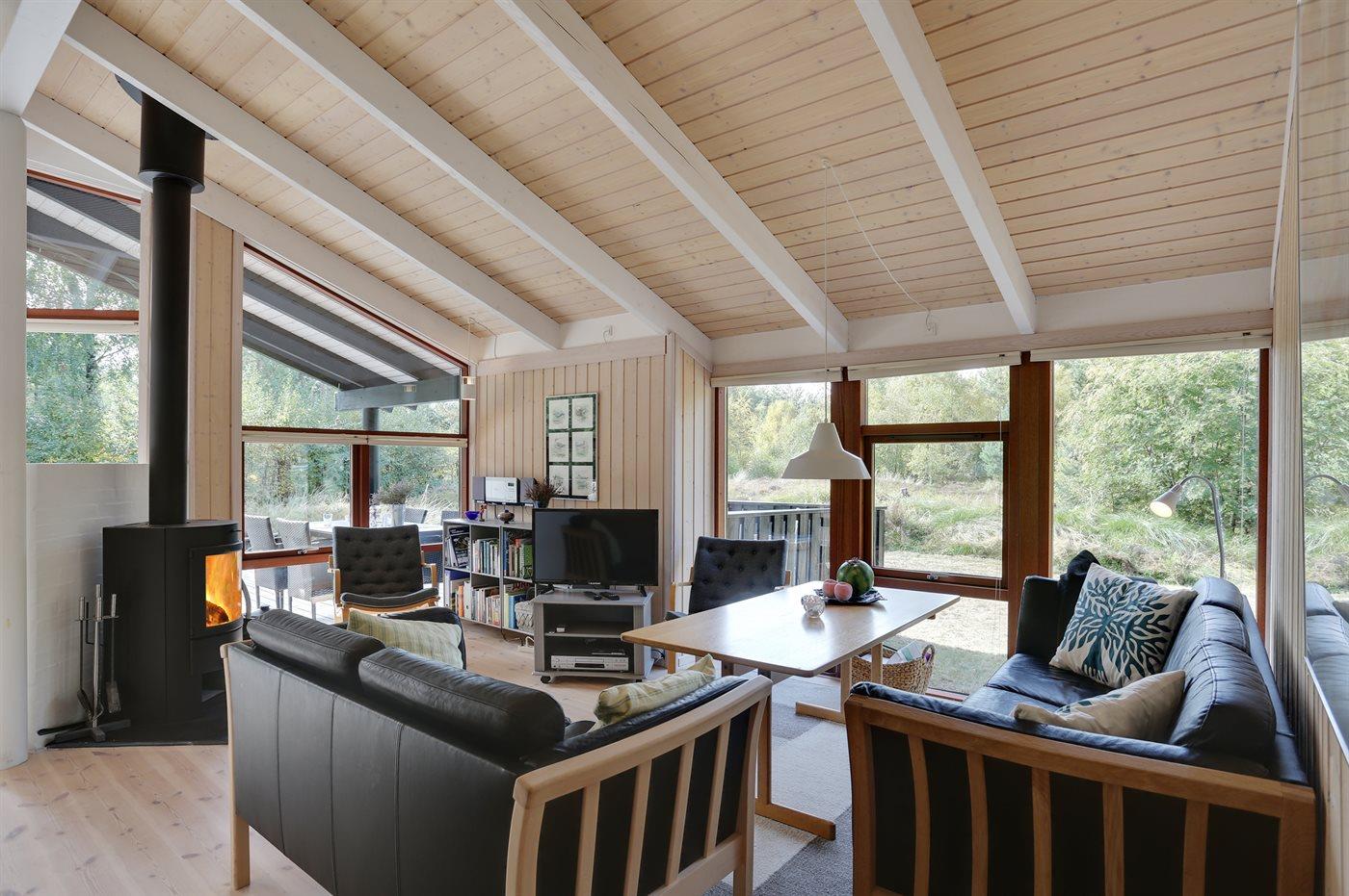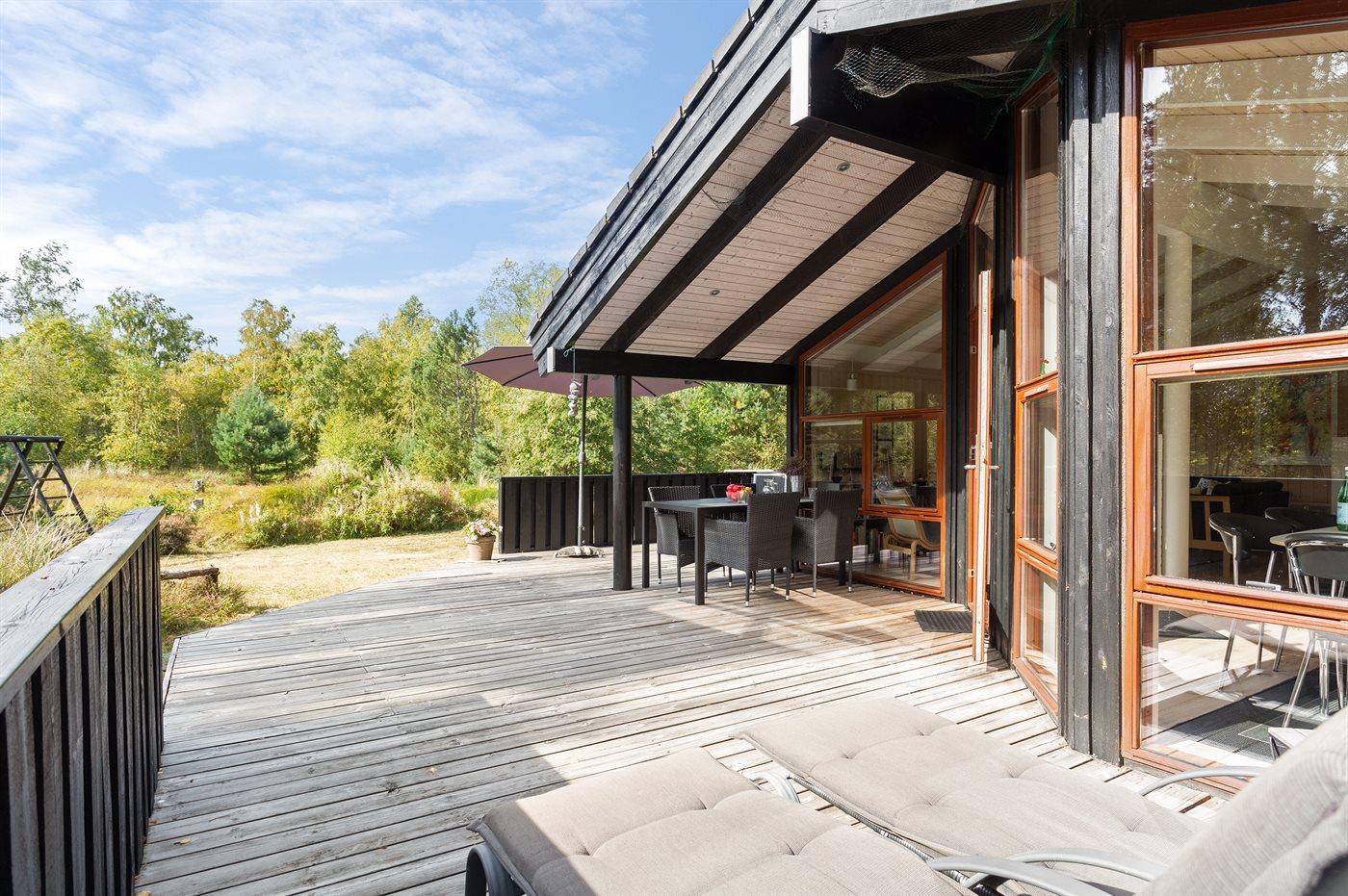 På en solrig natur-græsgrund i attraktivt område ligger dette smukke feriehus. Huset har en moderne køkkenafdeling, en flot møbleret opholdstue og dejlige lyse værelser.
