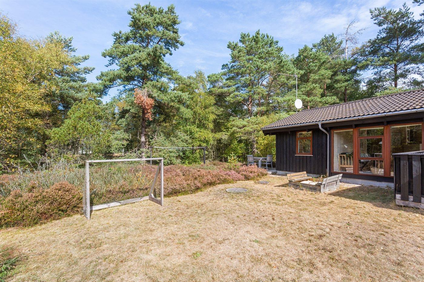 Ferieboligen er beliggende på en 3600 m² stor naturgrund. Der er 400 m til havet. Nærmeste forretning er beliggende i en afstand af 2000 m. Der er en golfbane i en afstand af 1000 m. Til ferieboligen hører 60 m² terrasseareal. Desuden er der 10 m² overdækket terrasse. Der er redskabsrum. Gynge. Sandkasse. Fodboldmål. Parkering ved ferieboligen.