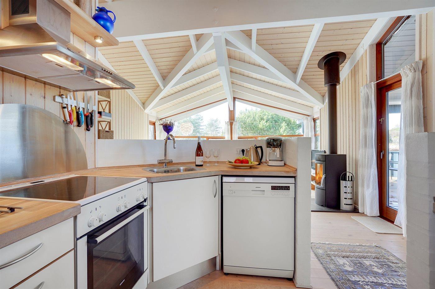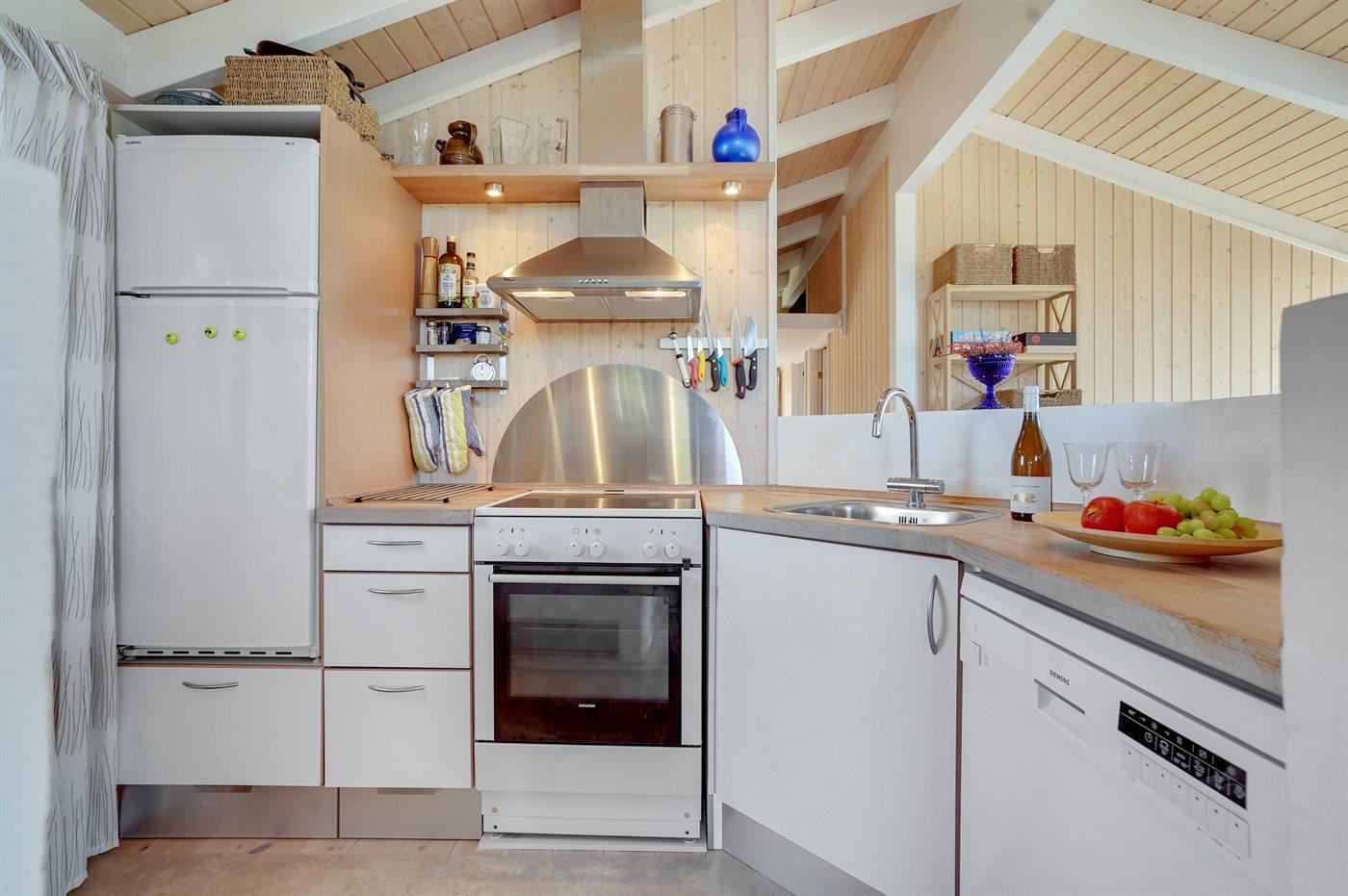 Køkkenet er udstyret med 1 køleskab. Der står 1 ekstra køleskab til rådighed. Der er 4 keramiske kogeplader, varmluftovn, mikrobølgeovn samt opvaskemaskine.