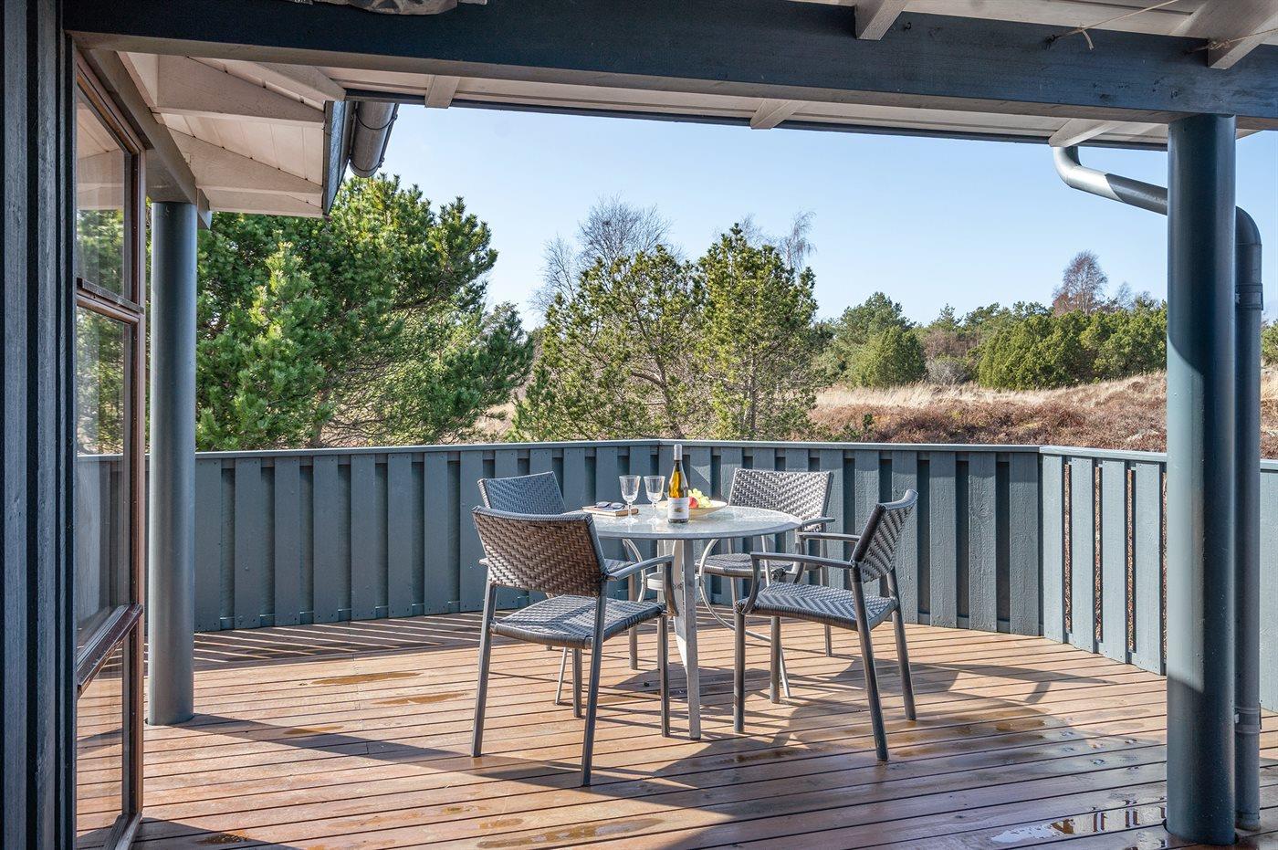 Ferieboligen er beliggende på en 1500 m² stor naturgrund. Der er 700 m til havet. Nærmeste forretning er beliggende i en afstand af 3500 m. Til ferieboligen hører 25 m² terrasseareal. Desuden er der 15 m² overdækket terrasse. Der er redskabsrum. Der er installeret stik til opladning af elbil. Type 2 stik. Med 11 kW ladeeffekt. Parkering ved ferieboligen.