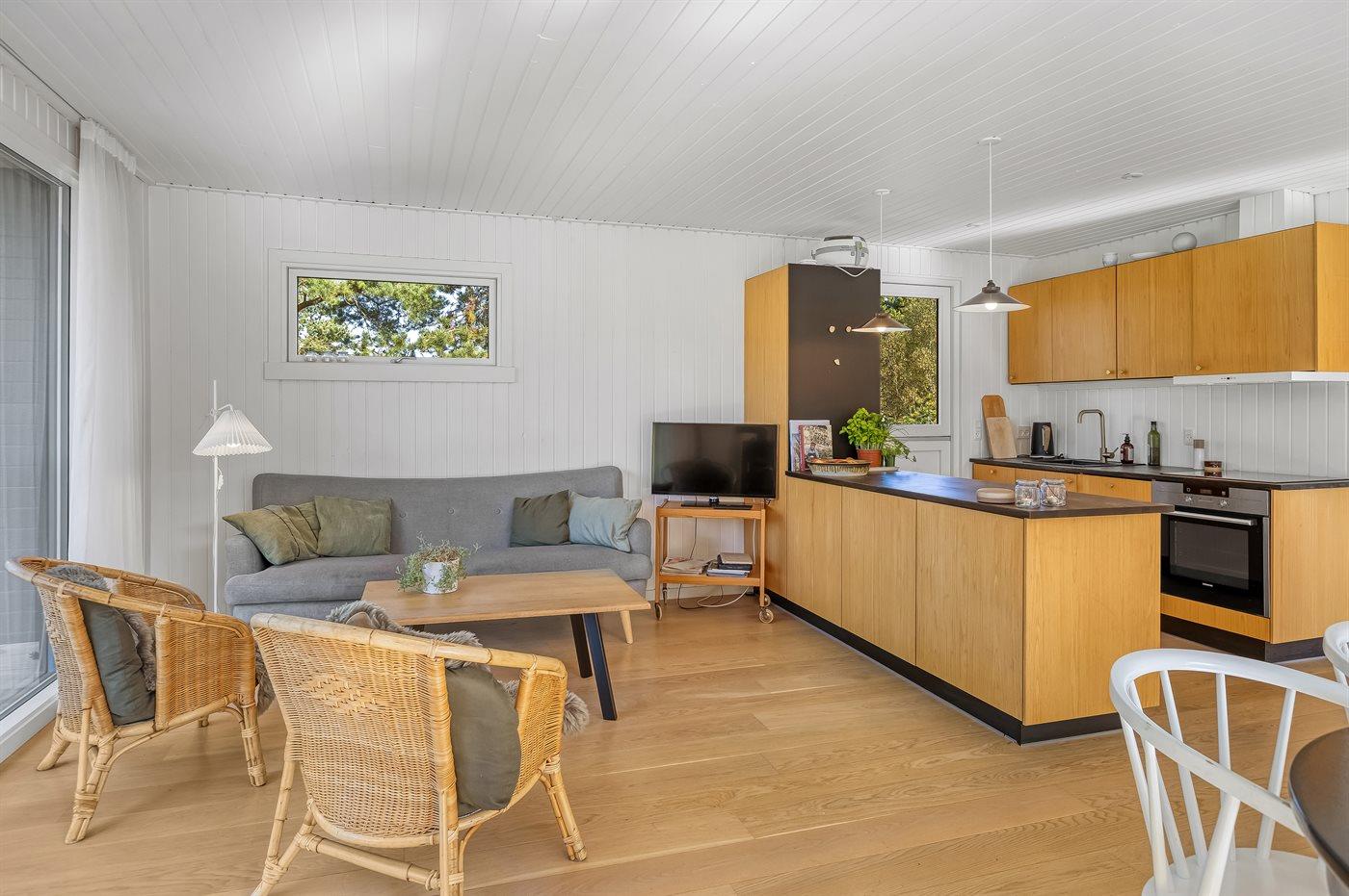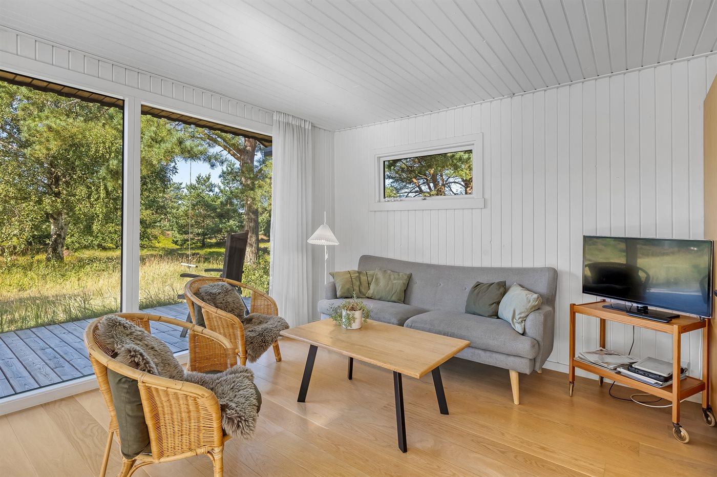Det velindrettede sommerhus er renoveret i 2021 i nordisk stil og med en dejlig beliggenhed tæt på havet. Stuen og det veludstyrede køkken er husets hjerterum. Terrassemiljø byder på både afskærmede, overdækkede og helt åbne områder.