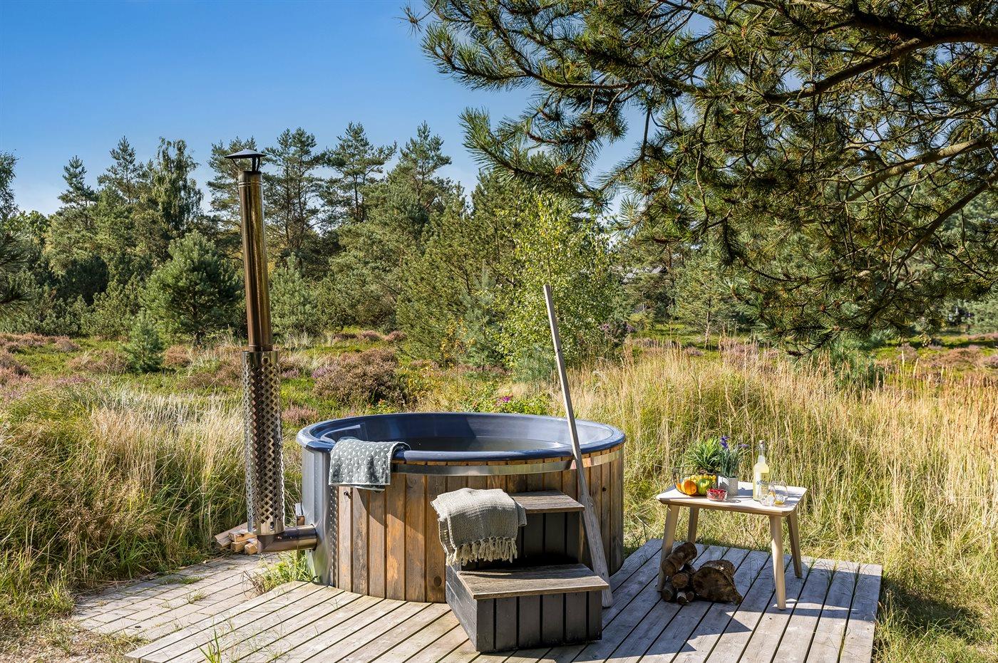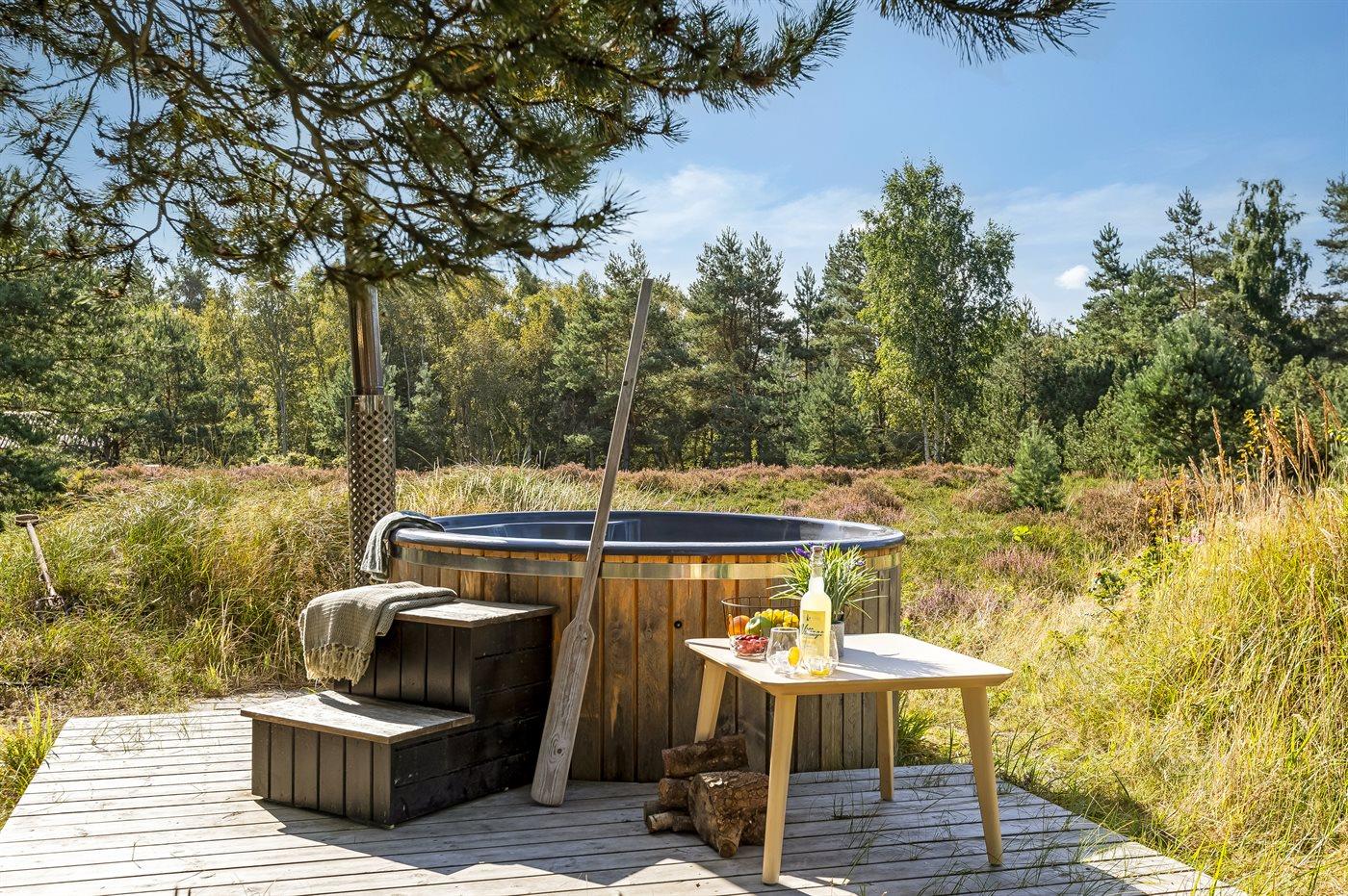 Der er mulighed for afslapning i det udendørs vildmarkskar til 4 personer.