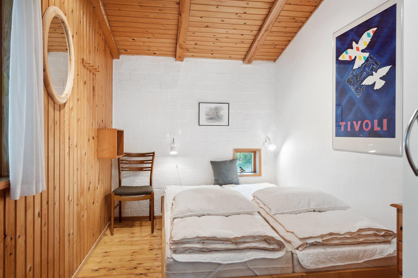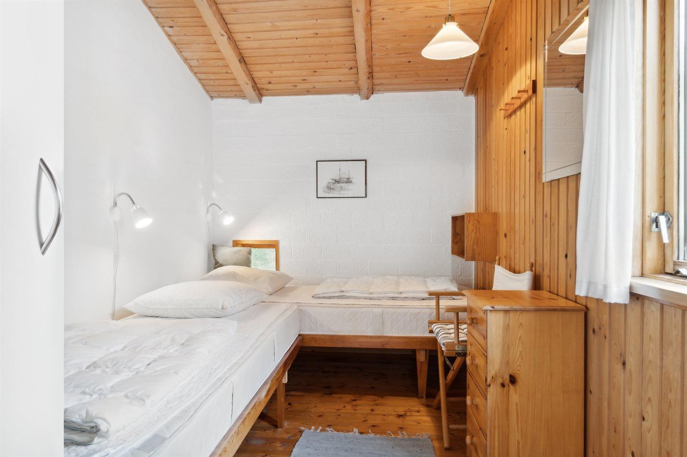 Der er i alt 2 soveværelser. Sovepladserne fordeler sig på: 2 sovepladser i dobbeltseng. 2 sovepladser i enkeltsenge.
