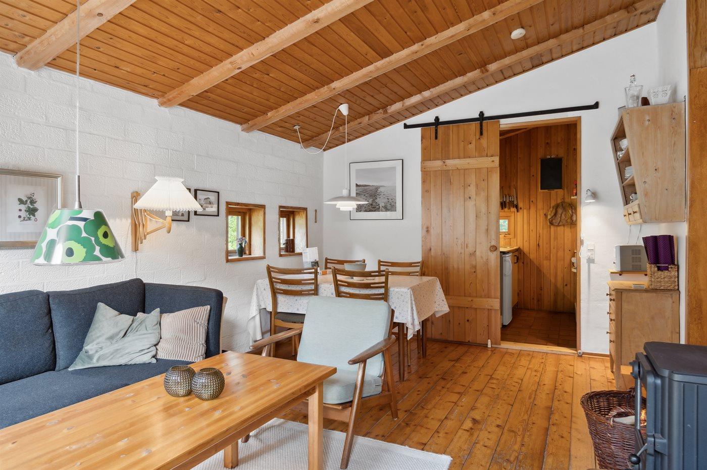 Hyggeligt feriehus på Læsø med rolig beliggenhed, terrasse og brændeovn tæt på havet.