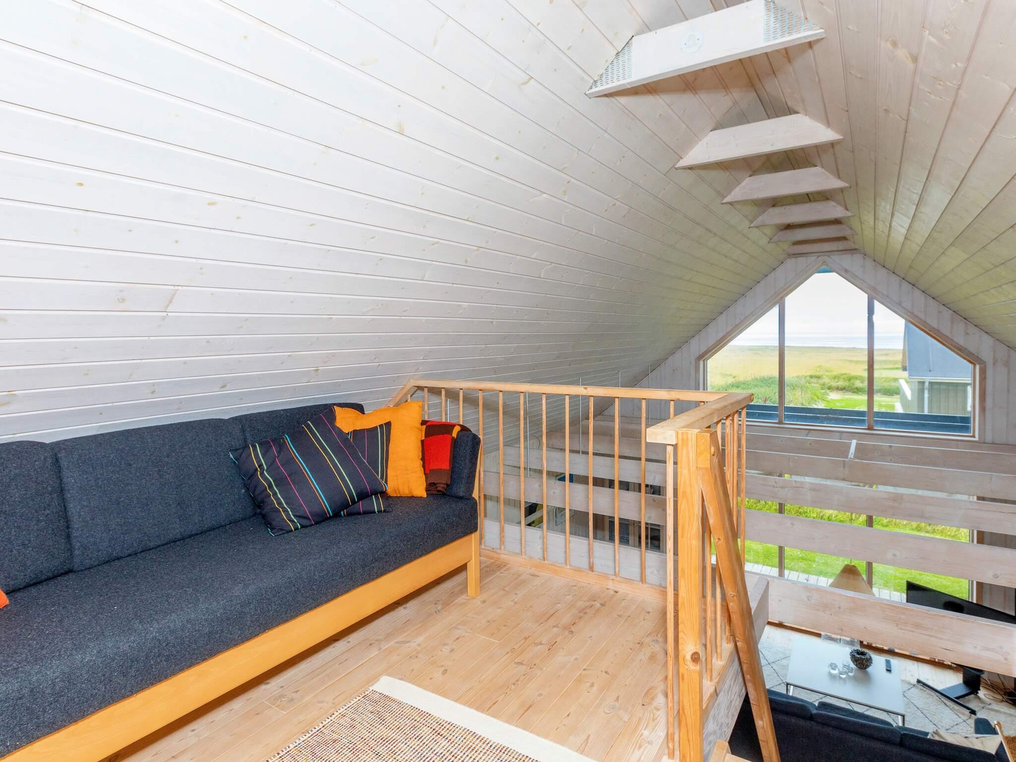 Sommerhus med særdeles skøn beliggenhed med havudsigt og den omkringliggende natur ved Lønstrup. Huset har mange fine, personlige detaljer. Køkken-alrummet er velindrettet og med højt til loftet. Her er der plads til, at hele familien kan hygge sig og være sammen, uanset om man er i køkkenet, spiller brætspil ved spisebordet eller slapper af i sofaen med en god bog. Der er to soveværelser med skabsplads og et stort lyst badeværelse med vaskemaskine og bruseniche. På 1. sal er der et repos med havudsigt, hvor I kan sidde og læse i en god bog. Udlejes ikke til ungdomsgrupper.