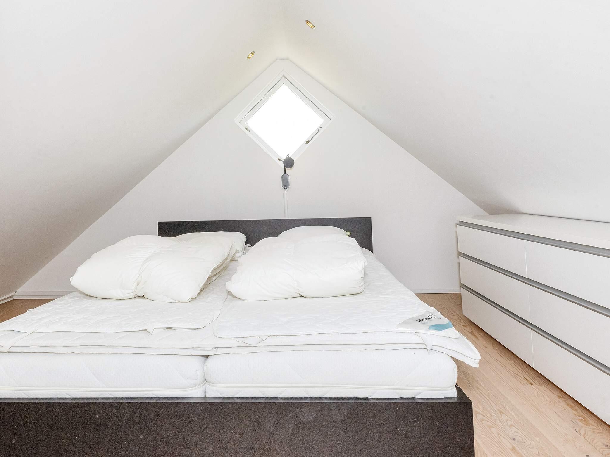 Sommerhuset fremstår med en lys og smagfuld indretning. På 1. sal findes bl.a. ekstra opholdsstue, hvorfra der især er flot udsigt over vandet. Her findes også 2 sovepladser i dobbeltseng for enden af stuen. Det ene soveværelse er indrettet på en stor og rummelig hems, som er adskilt fra resten af huset med en glasvæg med glasdør. Dermed bevares den skønne udsigt fra værelset. Et hus som rigtig mange gæster vender tilbage til år efter år.