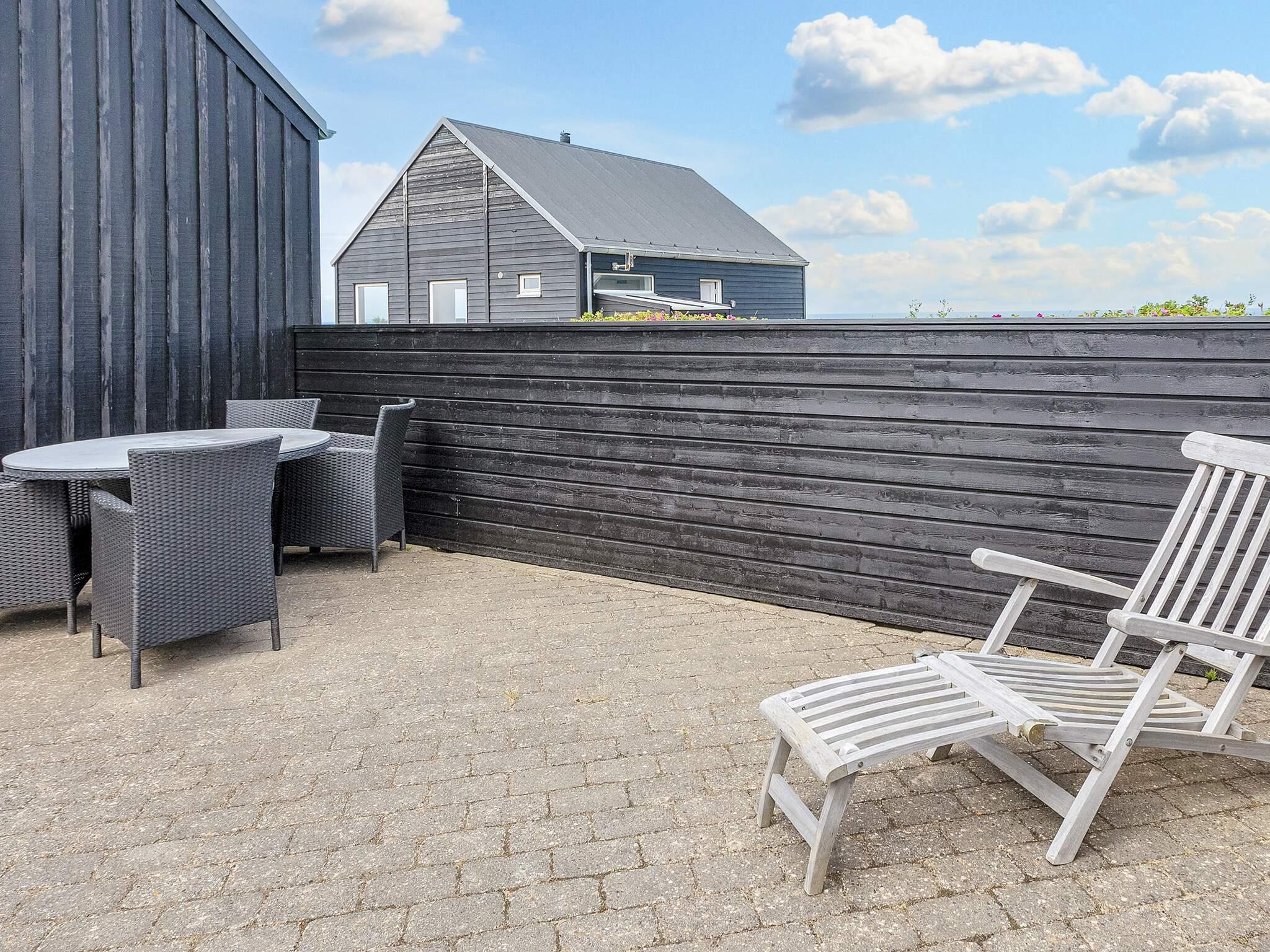 På den 1260 m2 store grund, der ligger direkte ned til stranden, hører 70 m² åbent terrasseareal. Heraf i alt 35 m² lukket terrasse. Her er rig mulighed for at hele familien kan samles rundt om havegrillen. Der er redskabsrum. Der er garage til rådighed. Udlejes ikke til ungdomsgrupper.