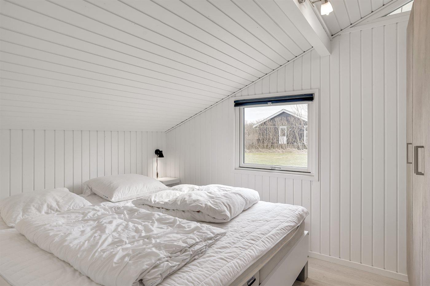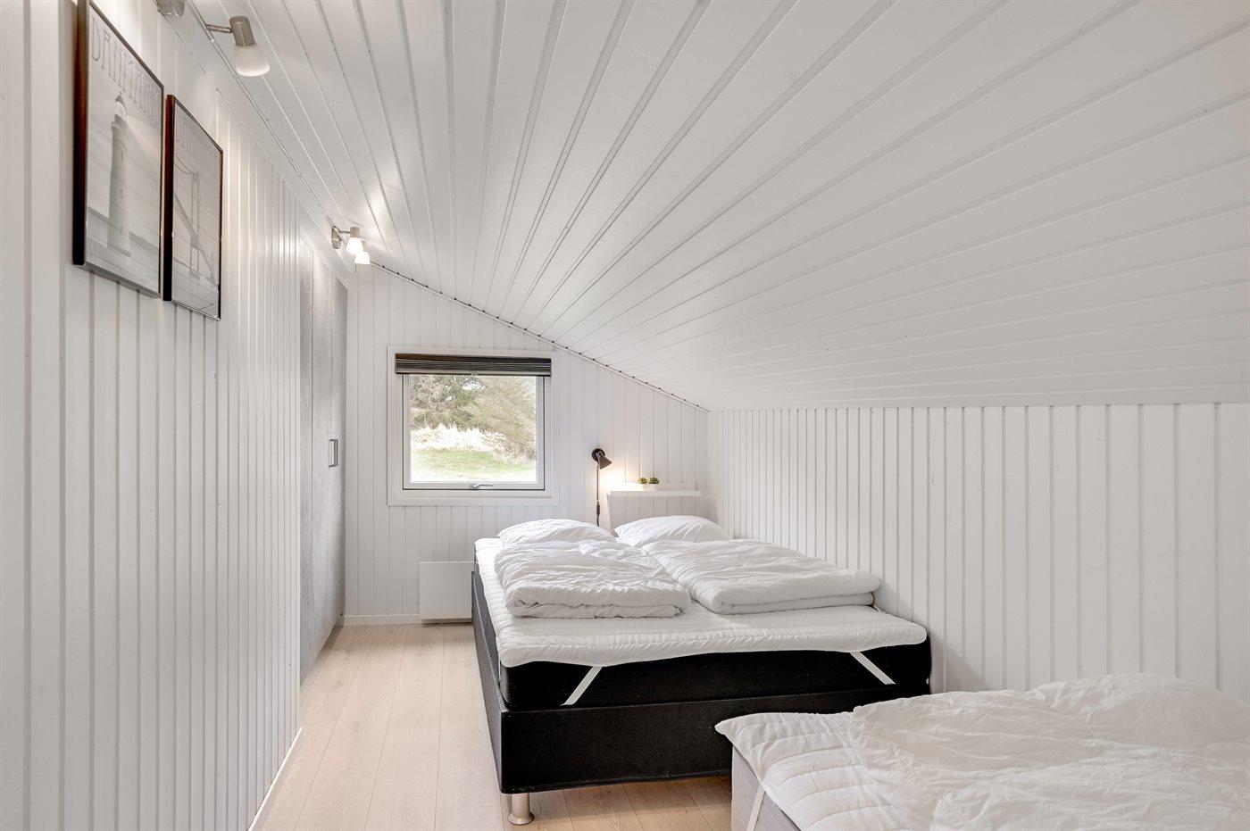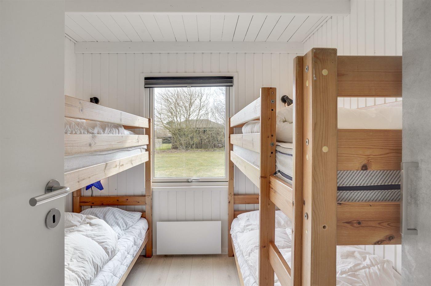 Der er i alt 3 soveværelser. Sovepladserne fordeler sig på: 2 sovepladser i dobbeltseng. 1 soveplads i enkeltseng. 4 sovepladser i køjesenge.2 sovepladser i elevationssenge. Derudover er der 1 stk. barneseng.