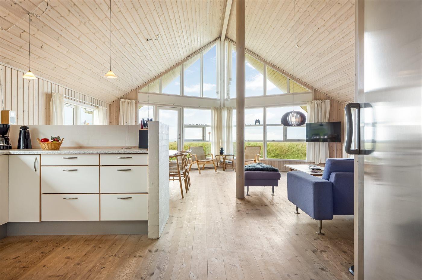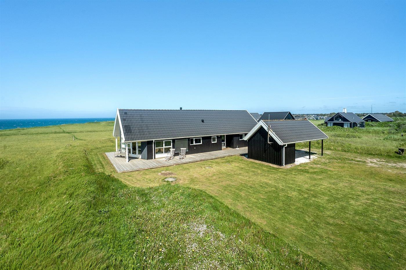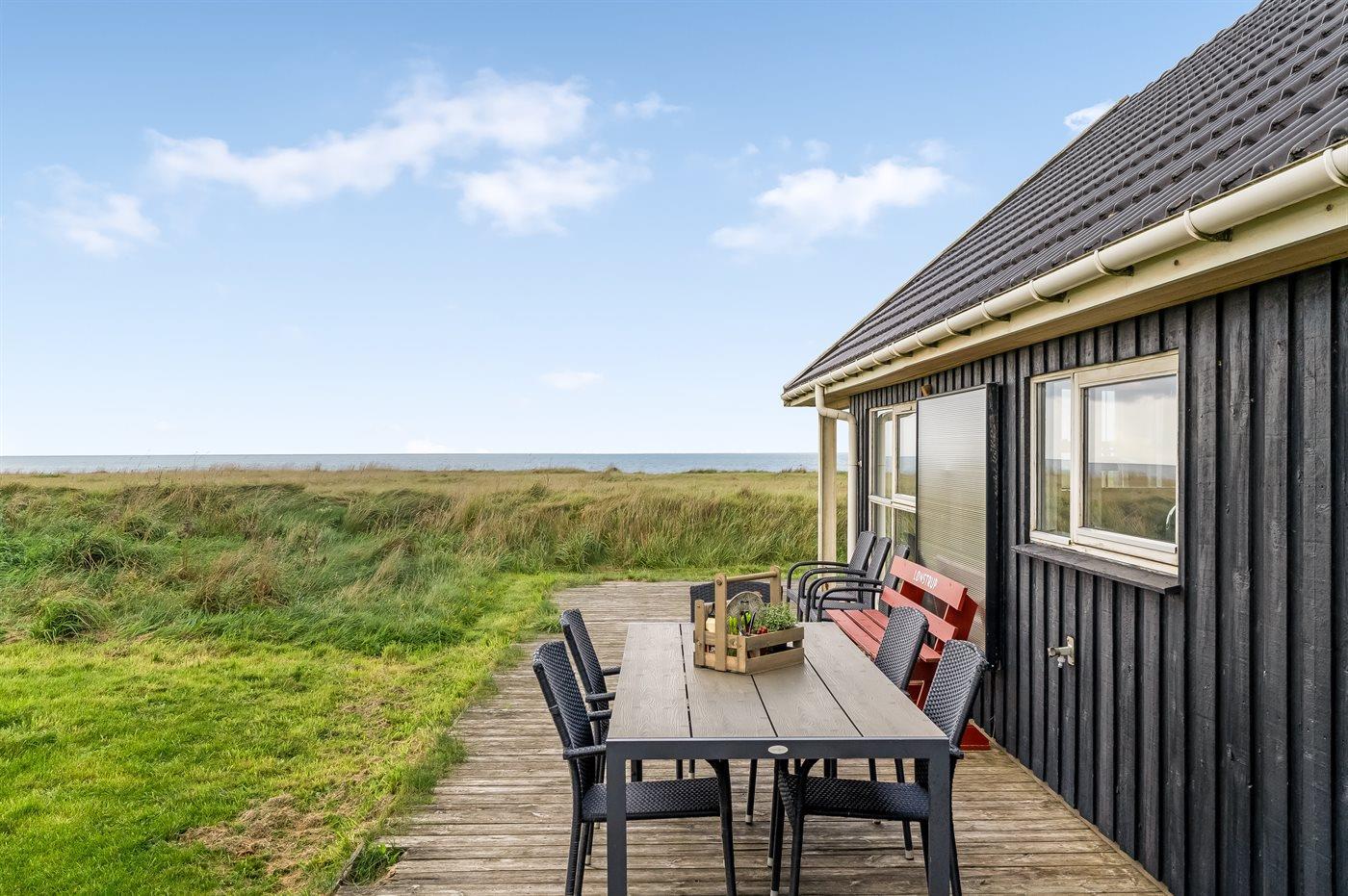 Et virkelig skønt og rummeligt sommerhus med en fantastisk beliggenhed i første række til vandet. Fra såvel huset som den åbne grund er der en pragtfuld udsigt over havet og til Rubjerg Knude, som ligger lige i nærheden.