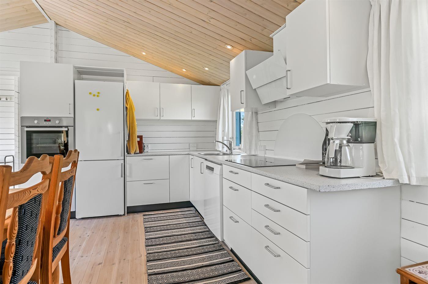 Køkkenet er udstyret med 1 køleskab. Der er 4 induktionskogeplader, varmluftovn, mikrobølgeovn samt opvaskemaskine.