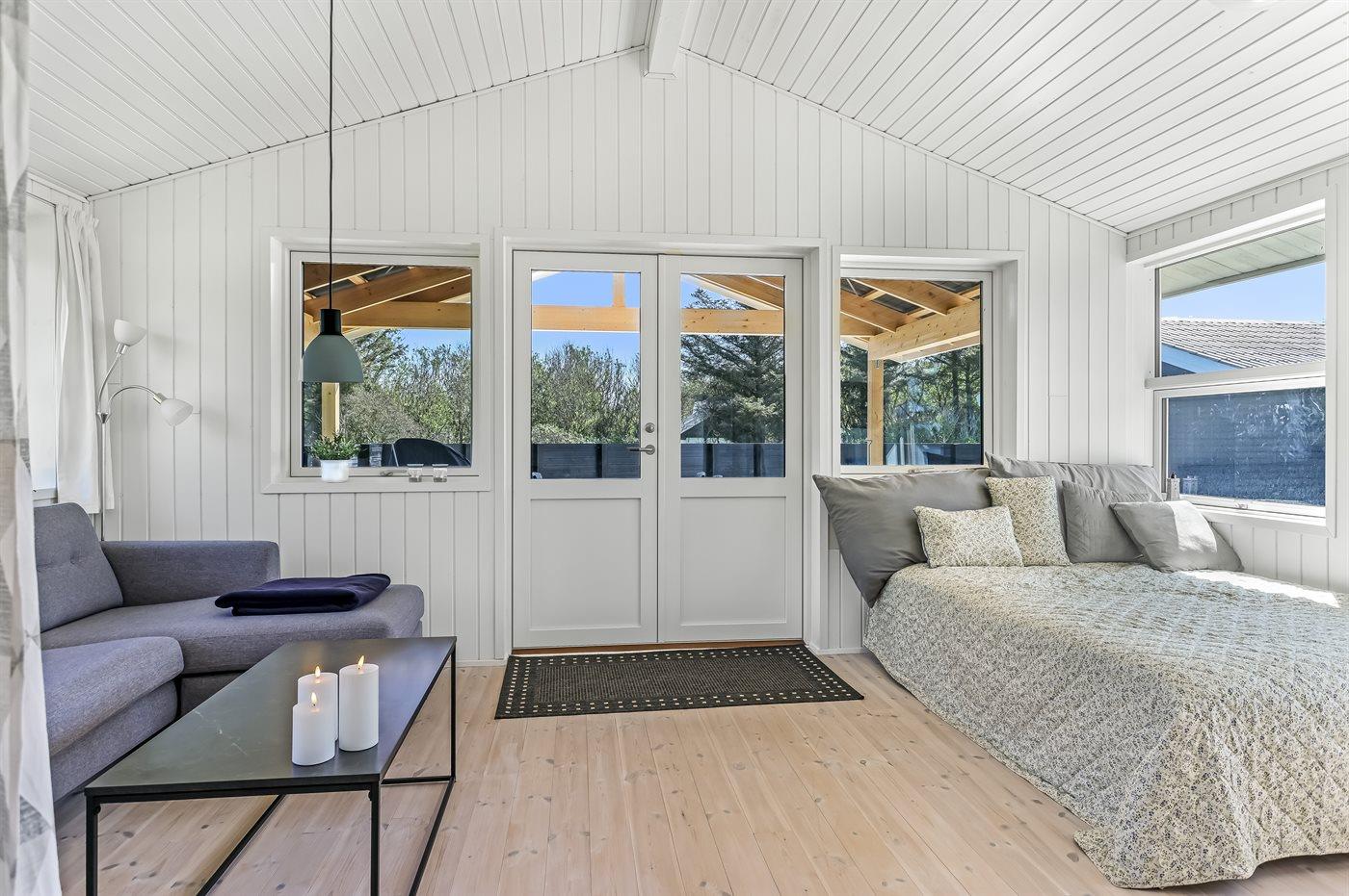 Ferieboligen er beliggende på en 2500 m² stor naturgrund. Der er 500 m til havet. Nærmeste forretning er beliggende i en afstand af 900 m. Til ferieboligen hører delvist lukket terrasse. Der er redskabsrum. Trampolin. Grill til rådighed. Der er installeret stik til opladning af elbil. Med 9 kW ladeeffekt. Parkering ved ferieboligen.