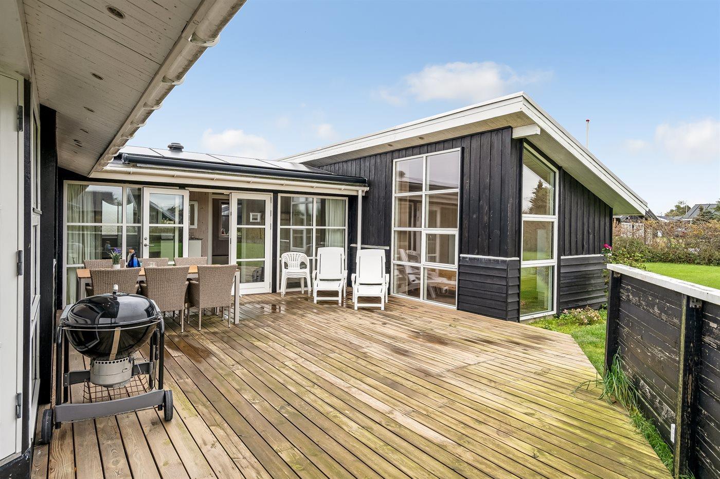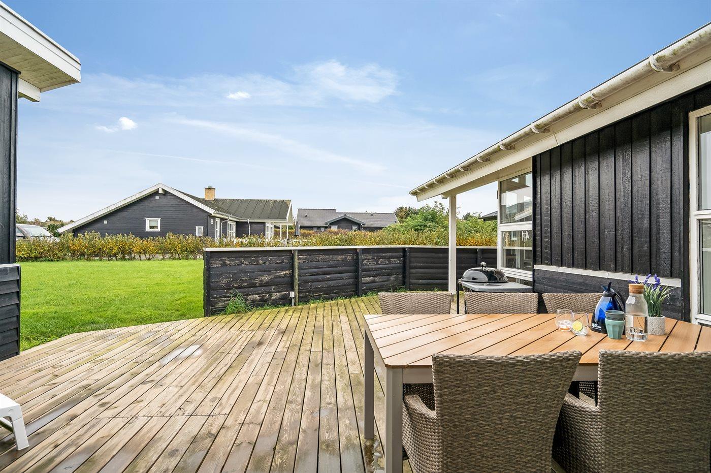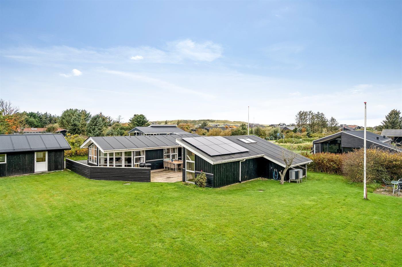 Ferieboligen er beliggende på en 1200 m² stor naturgrund. Der er 500 m til havet. Nærmeste forretning er beliggende i en afstand af 1000 m. Til ferieboligen hører åbent terrasseareal. Desuden er der overdækket terrasse. Der er redskabsrum. Grill til rådighed. Der er installeret stik til opladning af elbil. Med 11 kW ladeeffekt. Parkering ved ferieboligen.