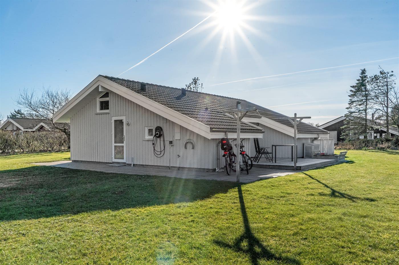 Ferieboligen er beliggende på en 1399 m² stor naturgrund. Der er 1200 m til havet. Til ferieboligen hører åbent terrasseareal. Desuden er der overdækket terrasse. Der er redskabsrum. Gynge. Sandkasse. Fodboldmål. Grill til rådighed. Der er installeret stik til opladning af elbil. Parkering ved ferieboligen.