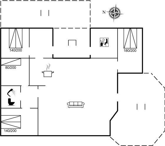 Der er i alt 4 soveværelser. Sovepladserne fordeler sig på: 6 sovepladser i dobbeltsenge. 1 soveplads i enkeltseng.