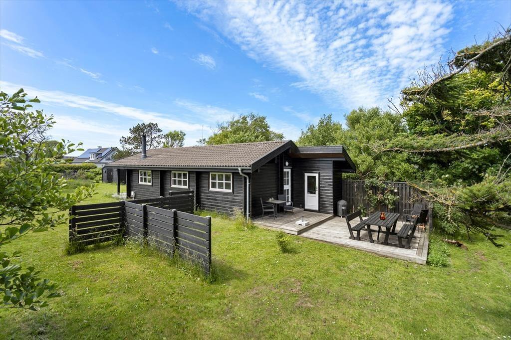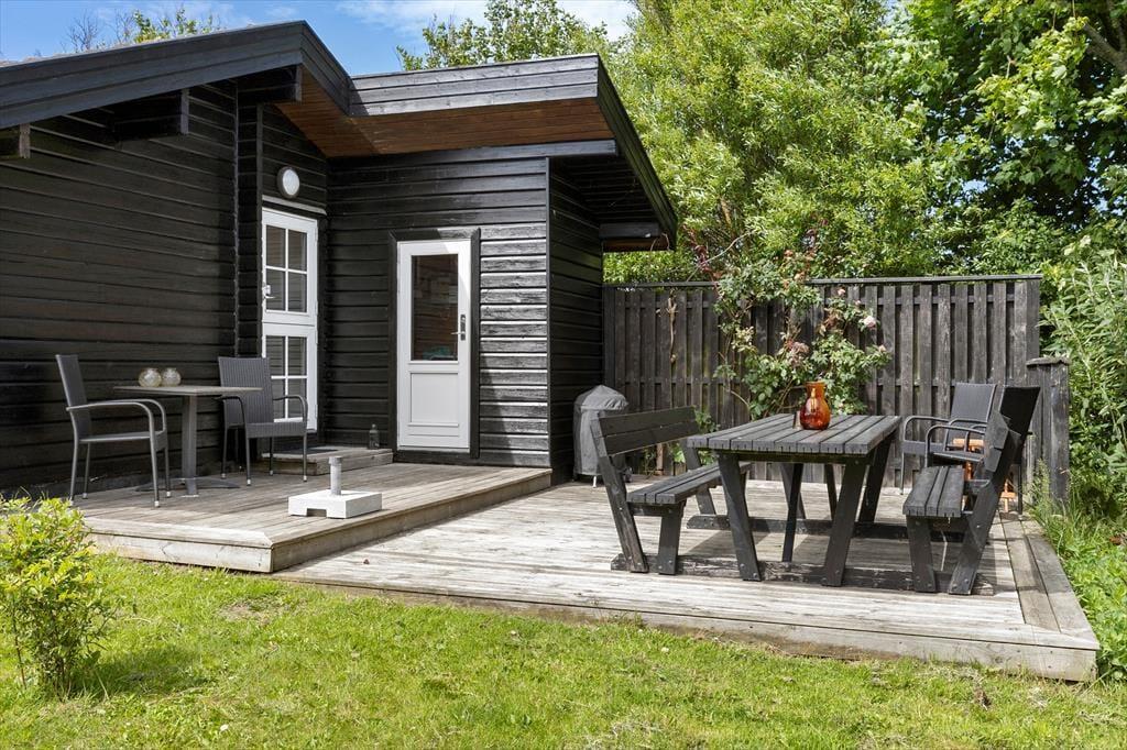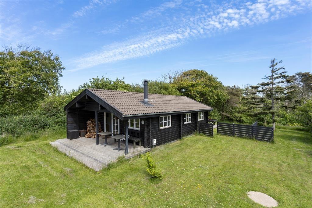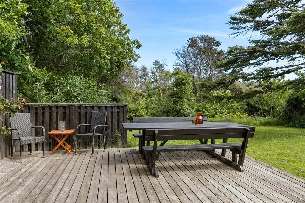 Sommerhuset ligger på en plan naturgrund med træer og buske til at give læ for Vestenvinden og med en dejlig, delvist overdækket terrasse, hvor du kan nyde sommeren med solbadning, lækre grillmåltider og de lange lune aftener. På østsiden af huset findes en skøn terrasse med dejlig udsigt over naturgrunden.