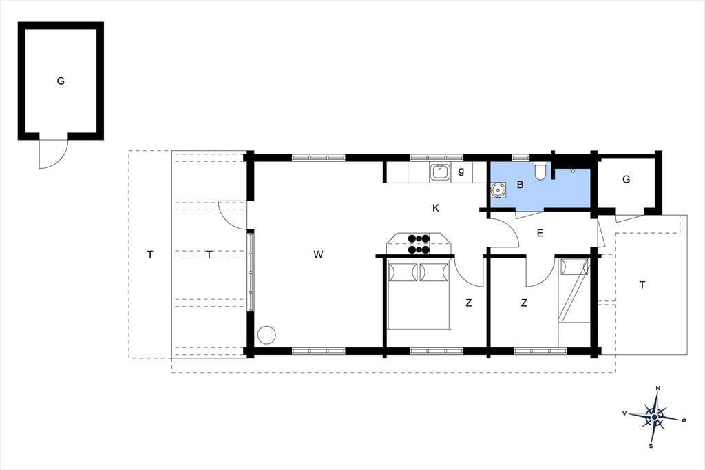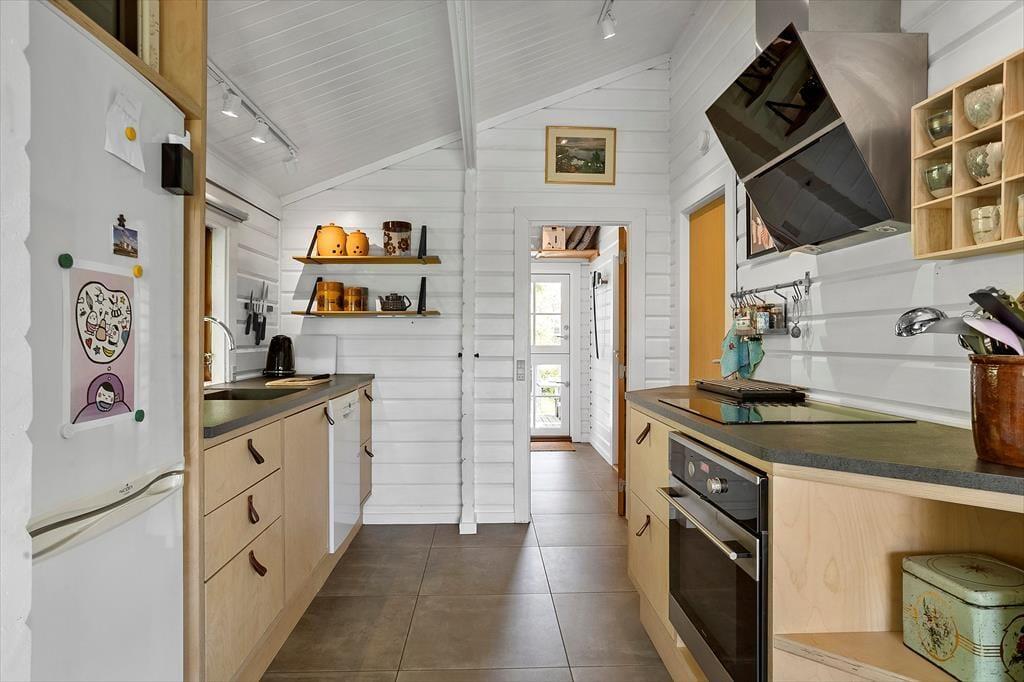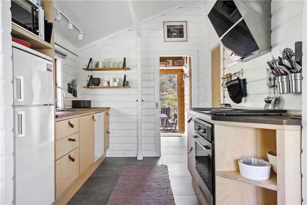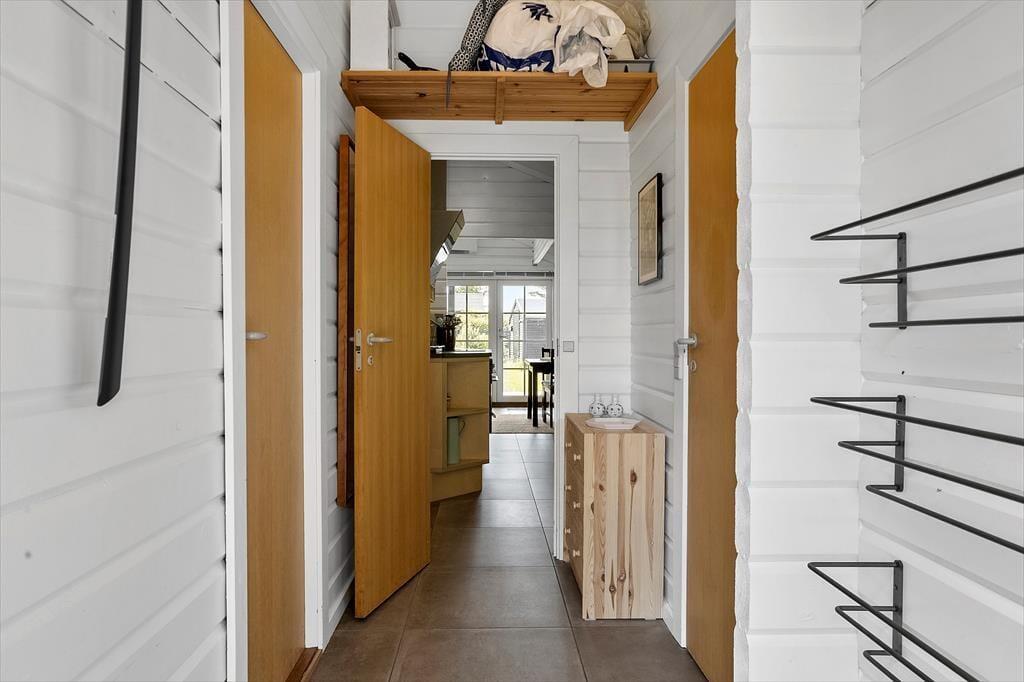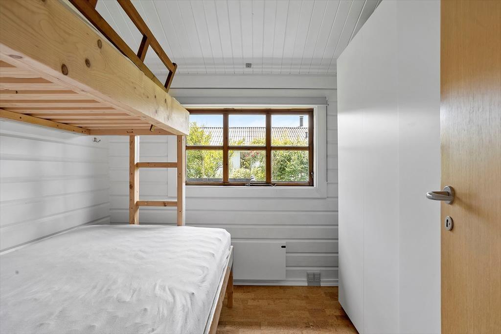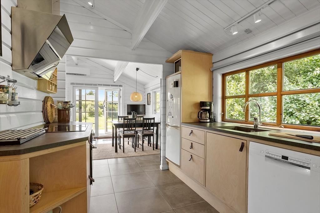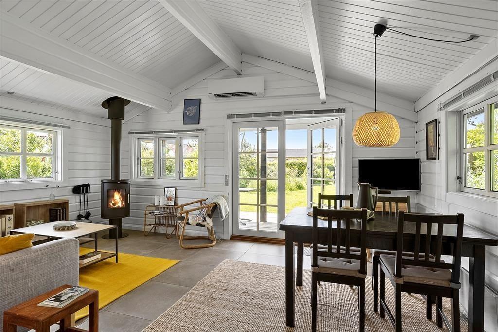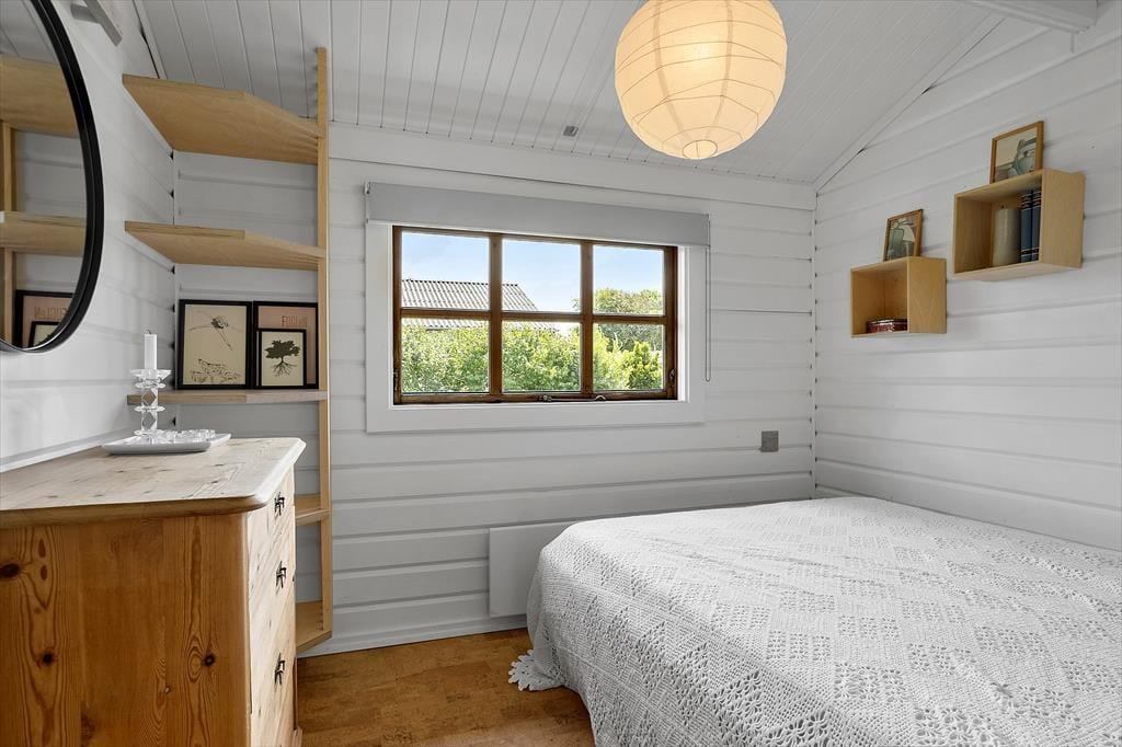 En dobbelt havedør giver adgang til dette skønne sommerhus. Sommerhuset er i træ med smukke klinkegulve og med en brændeovn som giver dig den helt rigtige sommerhusstemning. Et lækkert og funktionelt køkken giver rig mulighed for at tilberede feriemiddagene. Sommerhuset har udover det flotte badeværelse to soverum. Det ene med en dobbeltseng og det andet også med en mindre dobbeltseng og en køje over.