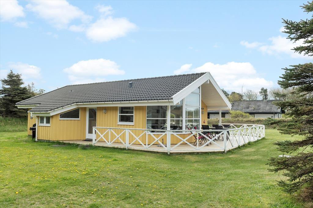 Sommerhuset ligger på en stor naturgrund med masser af plads til leg og boldspil. Skønne terrasser omkranser hele huset, så solen kan følges dagen lang, eller man kan finde sig en skyggefuld plet.