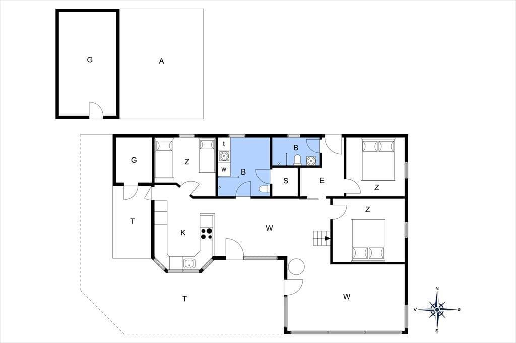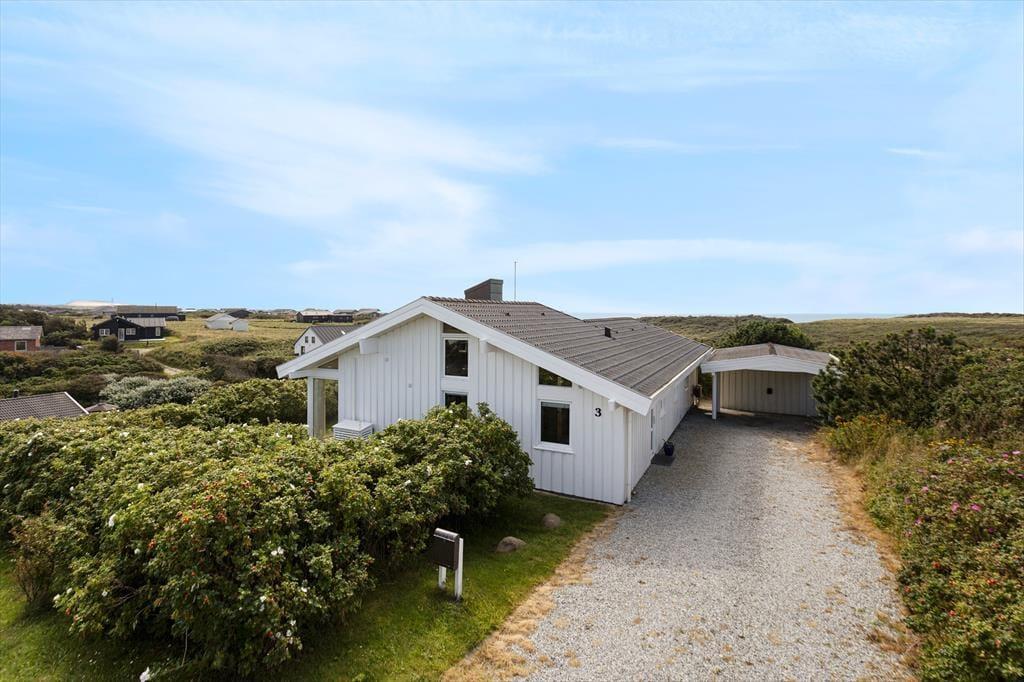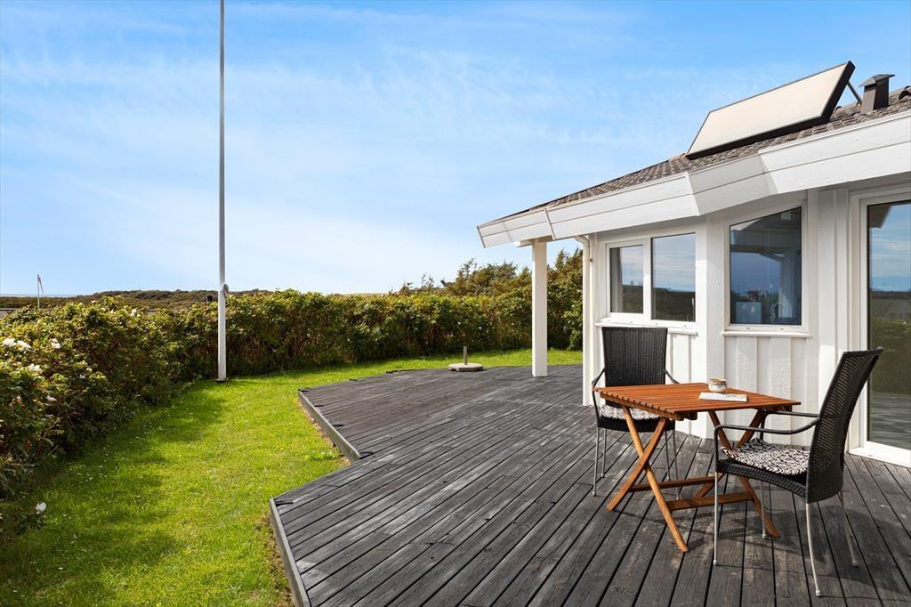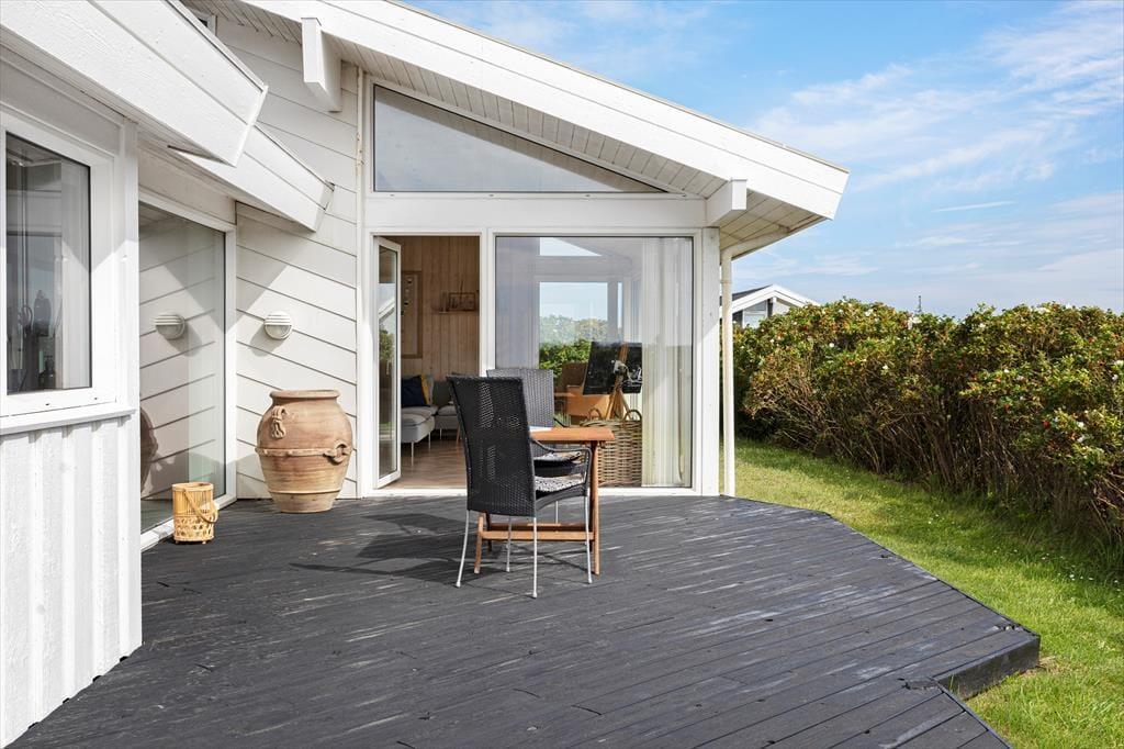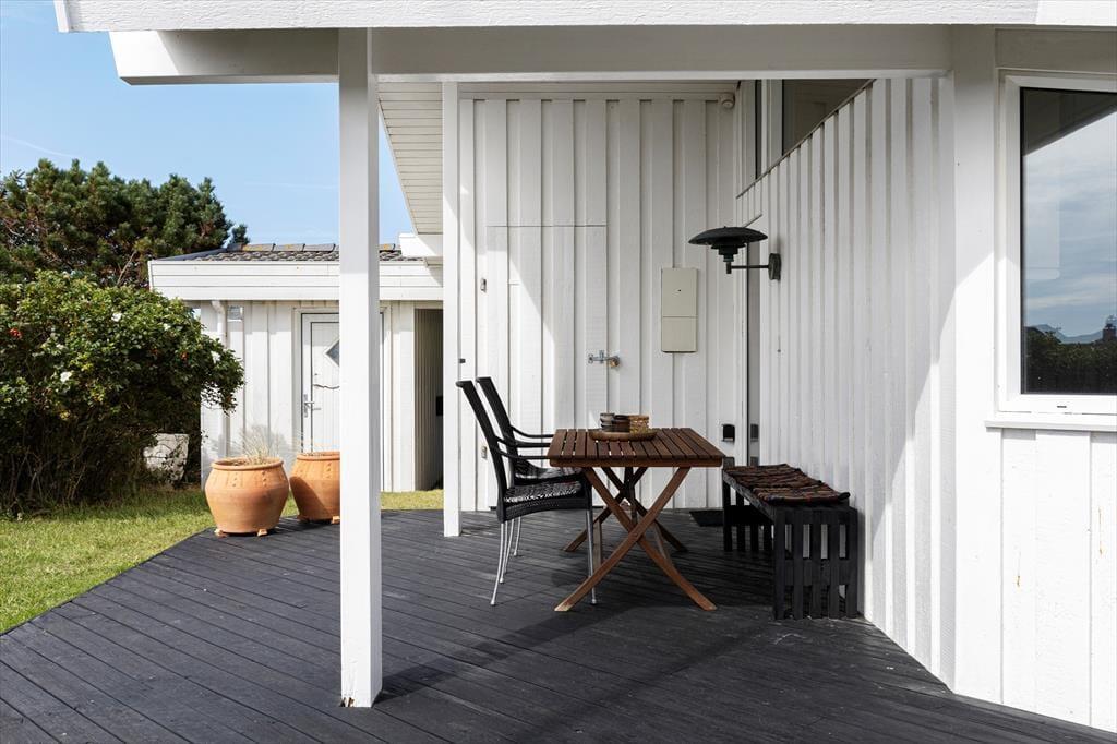 På den 1.200 m2 store grund har I udsigt til havet, god plads til at parkere bilen i indkørslen eller carporten. Solbadning, grill og hygge er der også masser af plads til, for det kan nemlig foregå på det delvist overdækkede og helt igennem herlige terrassemiljø, der ligger sydvest for sommerhuset.