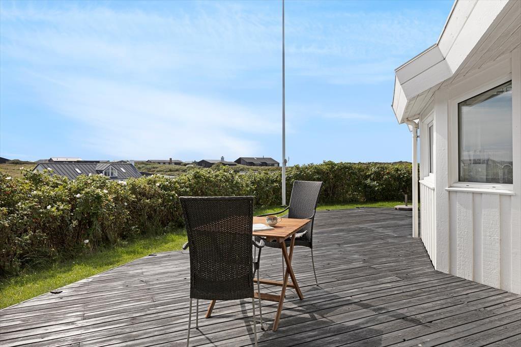 Sommerhuset ligger roligt placeret i hjertet af Lønstrup helt tæt på kysten. Fra sommerhuset kan I se havet, og vil I helt ned på stranden for at bade eller gå tur, kan I tage trappen ned ad klinten, der bare ligger 200 m væk fra sommerhuset. Har I medbragt fiskestang og andet grej, er der også mulighed for at få en fisk på krogen. Giver udsigten til Rubjerg Knude Fyr jer lyst til at tage på udflugt, er der kun få kilometer til den mægtige vandreklit, og endnu tættere på har I Lønstrups bymidte, som I kan gå til på få minutter.