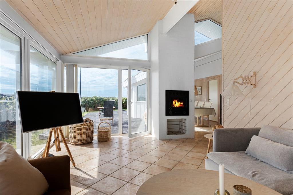 Udsigten til Rubjerg Knude er blot én af mange fine detaljer ved dette dejlige sommerhus. Det er nemlig smagfuldt indrettet og udstyret med blandt andet spabad, sauna og pejs, og så ligger det både roligt og centralt i Lønstrup.