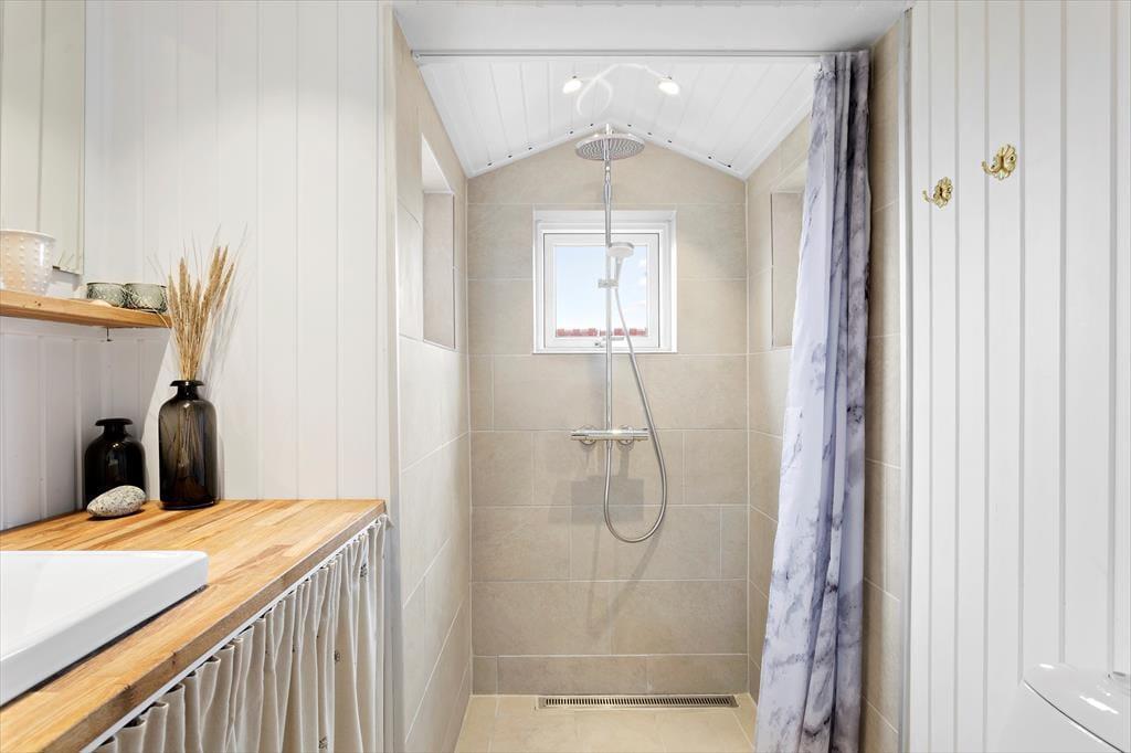 Solskin, havudsigt og frisk saltvandsduft i næseborene: Det er herligt at være ude i det fri på sommerhusets to terrasser! Den ene vender ud mod vandet, mens den anden er sydvendt og delvist overdækket, så begge er skønne opholdspladser, når vejret indbyder til udendørs driverliv.