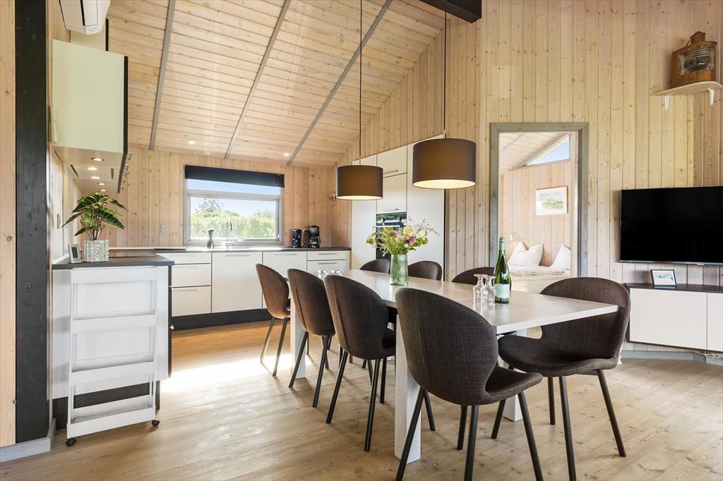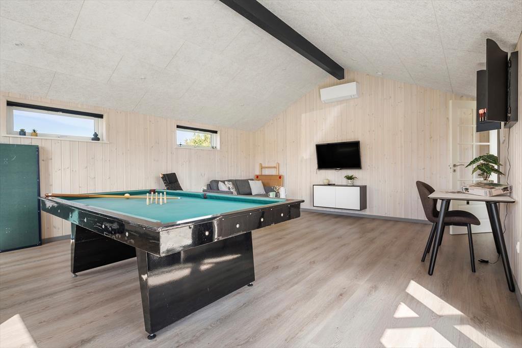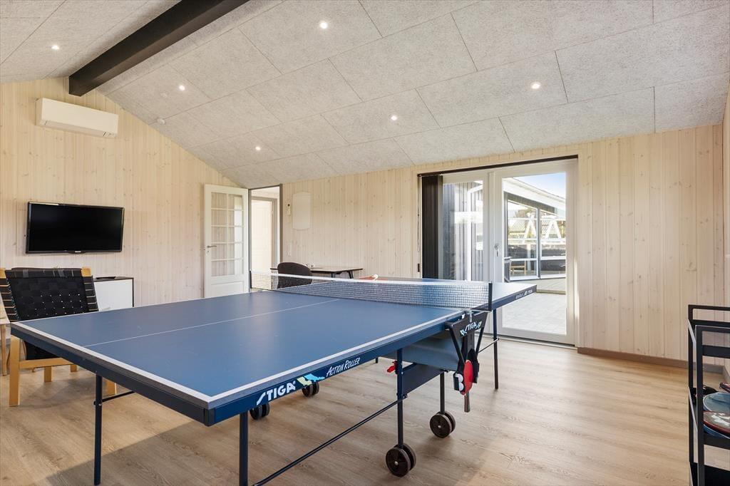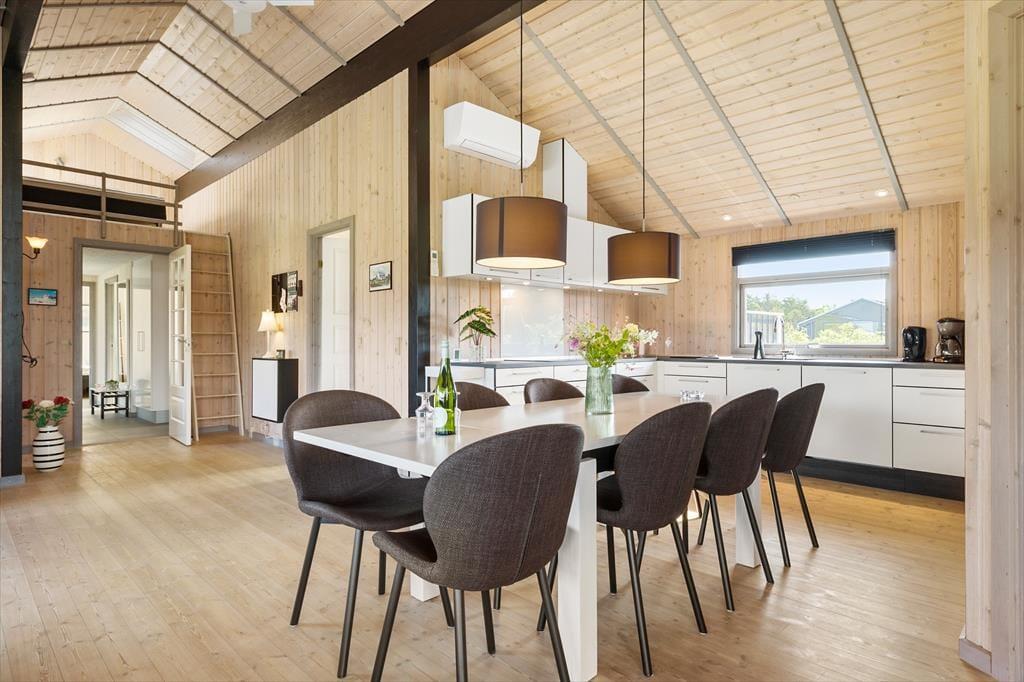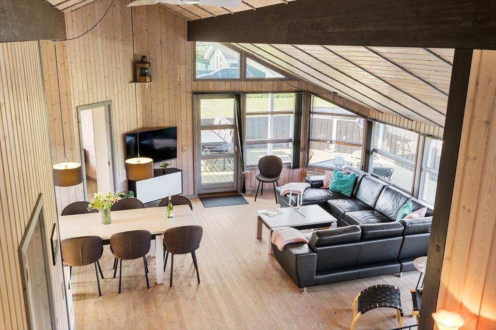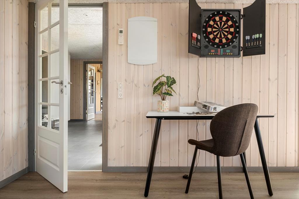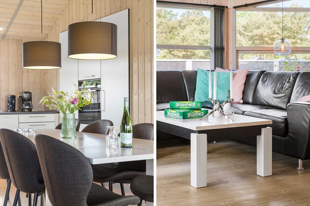 Man mærker med det samme, at huset er opført med det hyggelige samvær som ledestjerne. Der er en dejlig varm og indbydende atmosfære i det store køkken-alrum, som byder på god plads til både fællesmiddage og hyggelig afslapning i sofahjørnet. Den flotte loftshøjde bidrager sammen med de store vinduespartier til den behagelige oplevelse af lys og luft, og der er direkte udgang til det skønne terrassemiljø. Huset indeholder fire soveværelser og to badeværelser, hvoraf det ene har adgang til sauna. Som ekstra bonus får du et herligt aktivitetsrum med Playstation 4 og bordtennisbord – perfekt til legebørn i alle aldre.